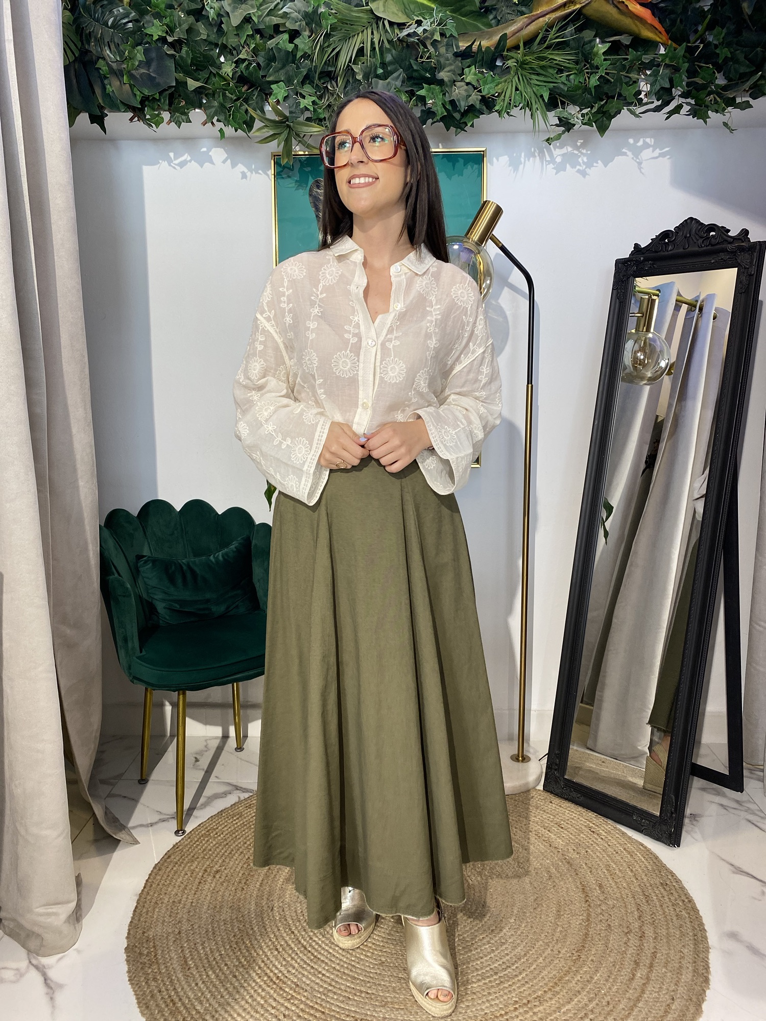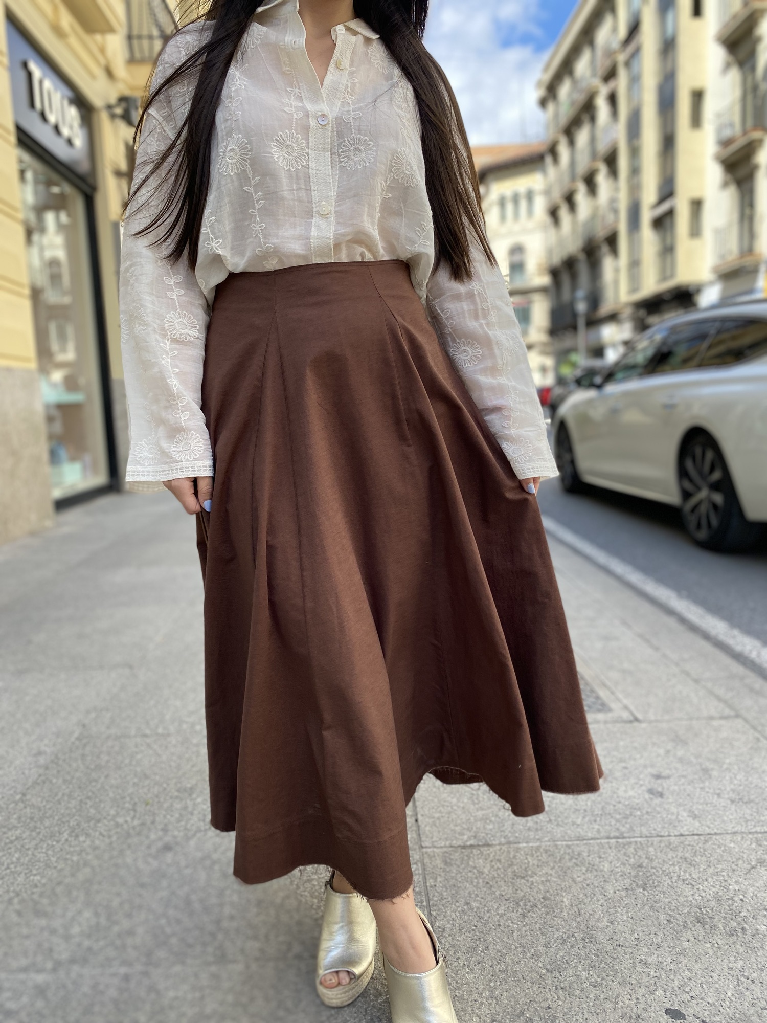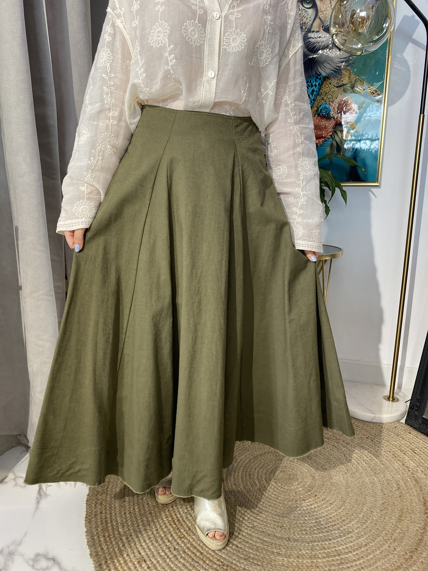 Siente la ligereza del lino en esta falda con un bonito vuelo que aporta movimiento y fluidez a tu silueta. Una prenda esencial para un verano con estilo.