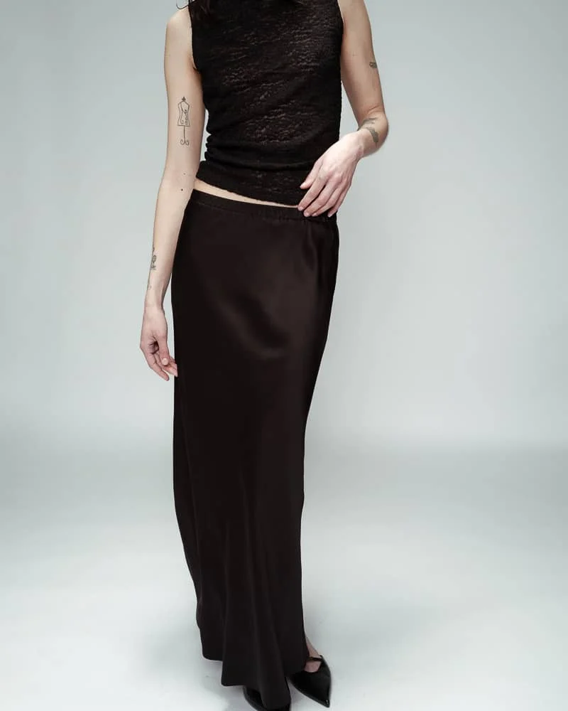 La falda larga ORIENT está confeccionada con un tejido de rayón y se suma a nuestra gama de fibras naturales ‘Un Brin de Vert’. El satén viste la falda ORIENT para crear una silueta fluida y sofisticada. Este modelo tiene un corte entallado y cintura elástica de talle medio que le aporta mayor comodidad.
