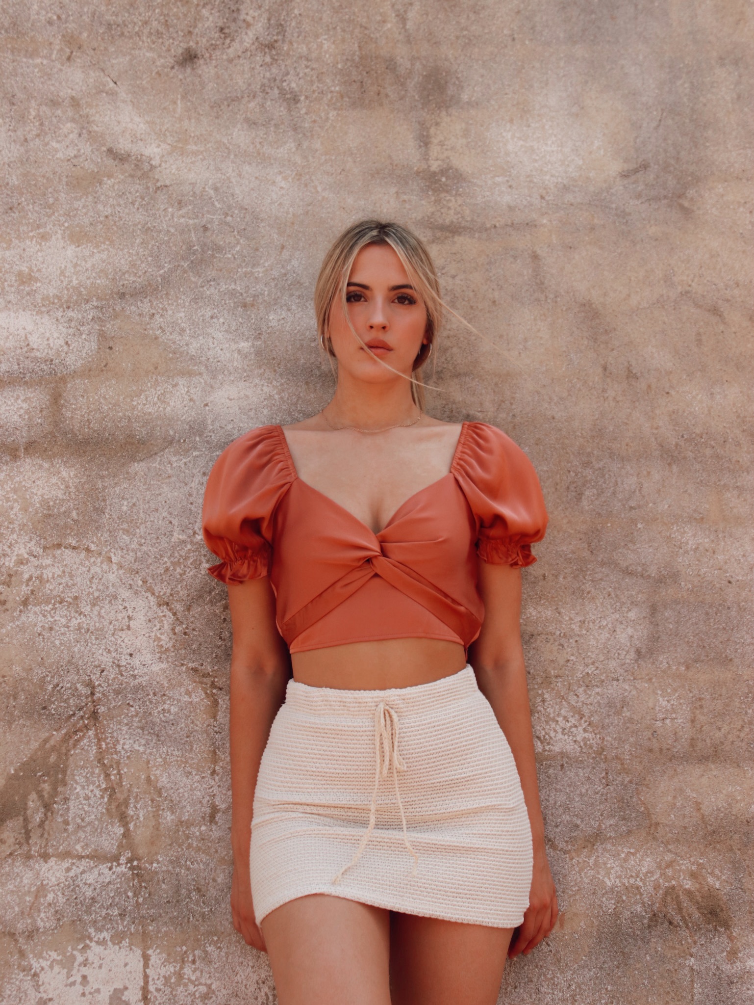 Esta mini falda calada es un básico para los días de calor, tiene forro para que no transparente y es ideal para combinar con cualquier top o blusa.
