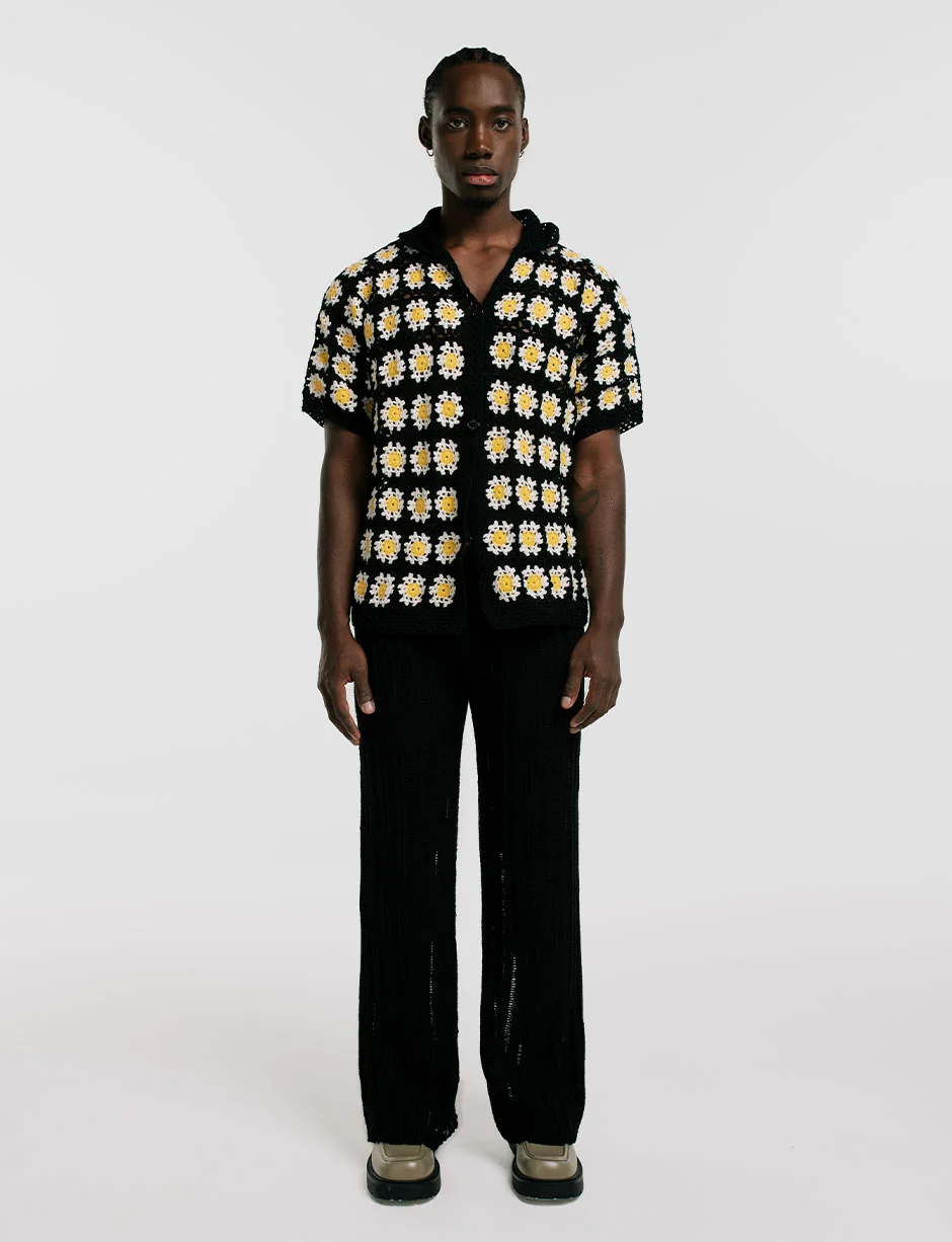 Camisa manga corta en Hilo Hipoalergénico en print margaritas. Fit clásico perfecto para climas cálidos. Prenda tejida a mano en crochet, terminada y bordada a mano. Hecha artesanalmente en Sogamoso, Boyacá., disponibilidad en todas las tallas.