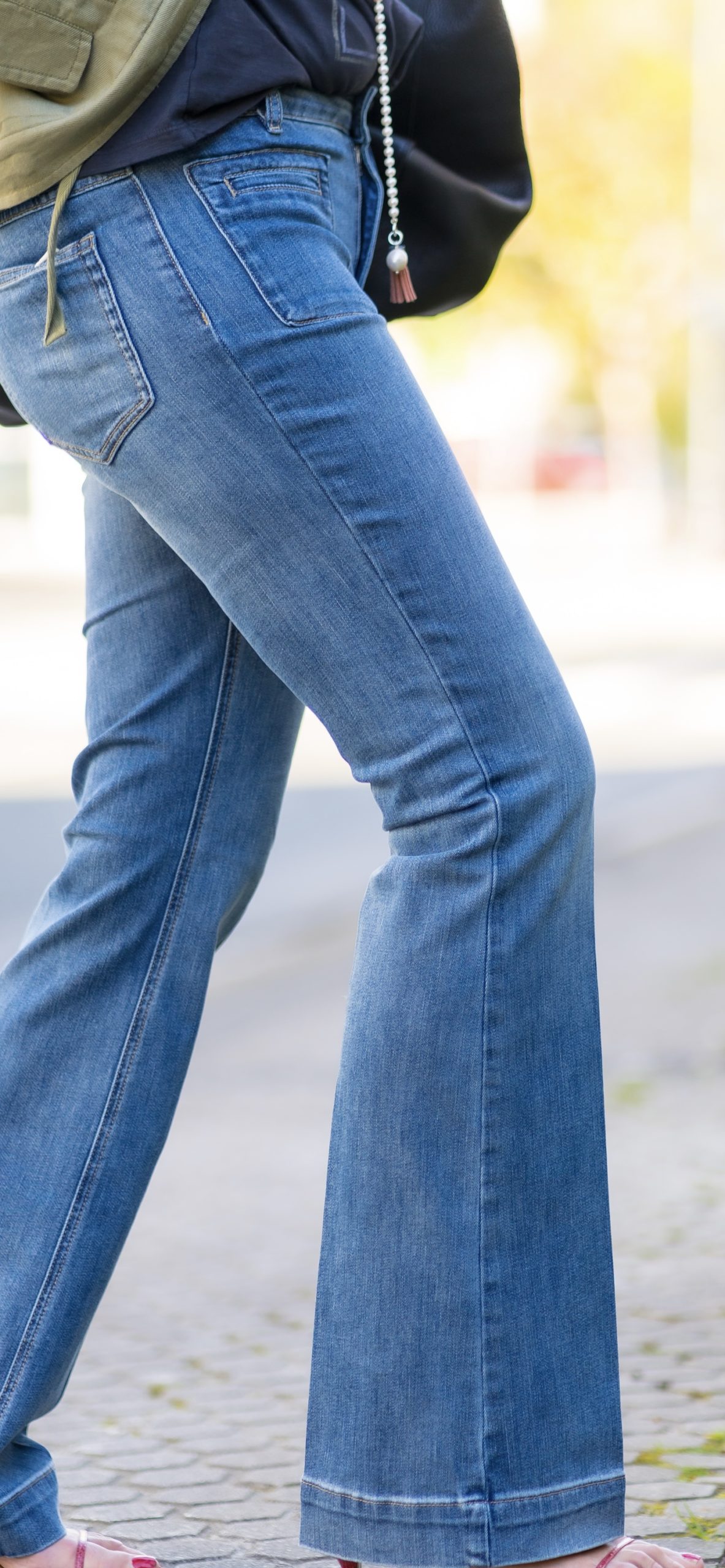 Pantalón largo en color vaquero con cuatro bolsillos, dos en la parte delantera en forma cuadrada