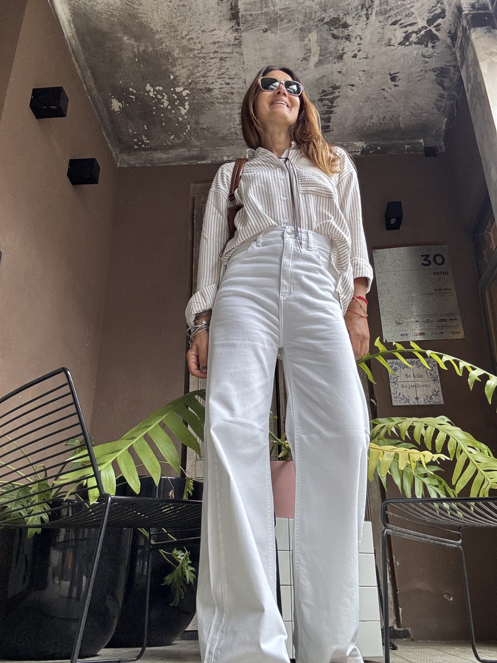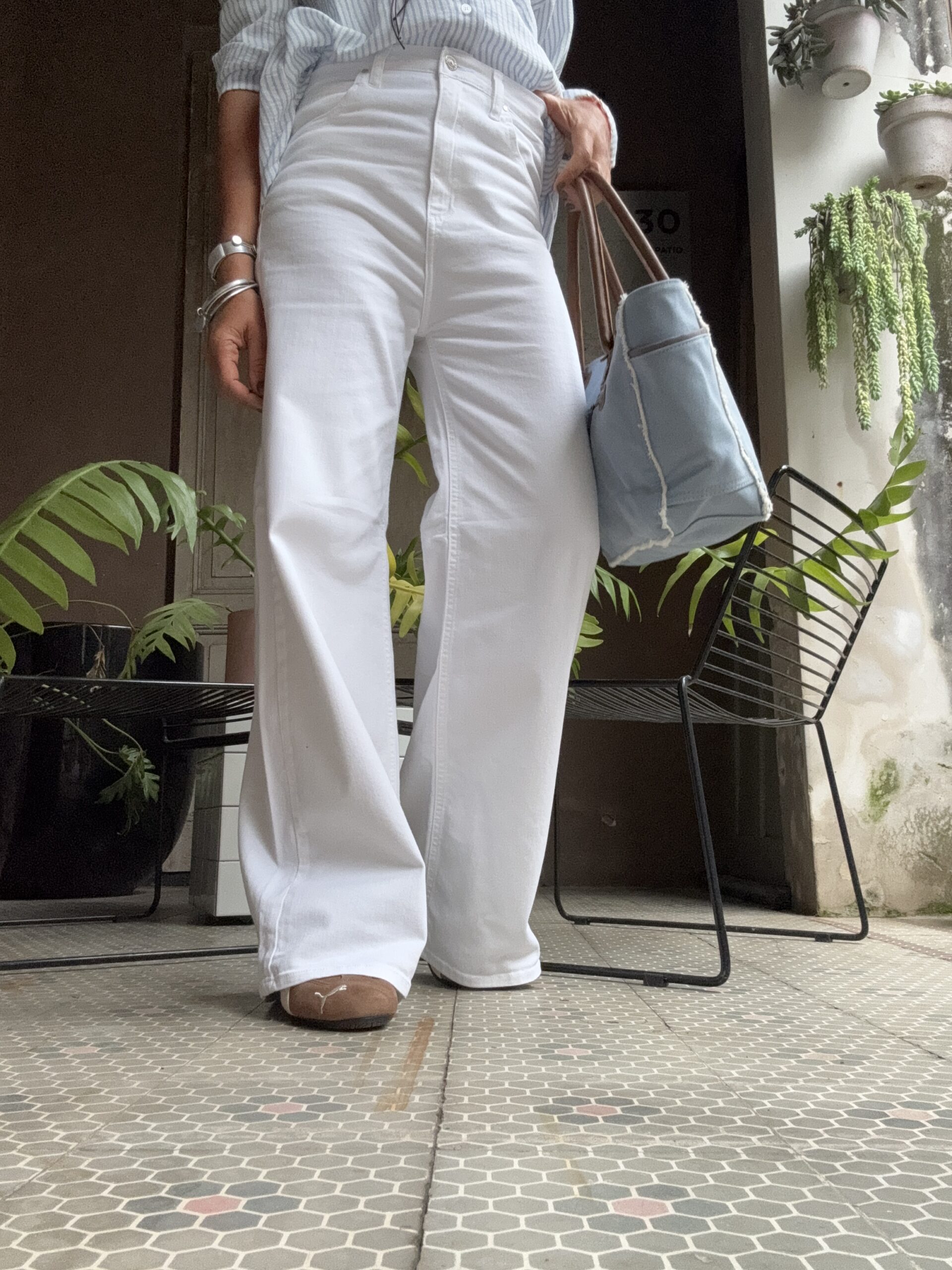 Jean blanco de tiro alto con diseño wide leg. Calce holgado y fluido, lo que le da un aire elegante y cómodo a la vez. Está confeccionado en denim liso, sin desgastes ni roturas, lo que lo hace minimalista y versátil, ideal para looks casuales y arreglados.