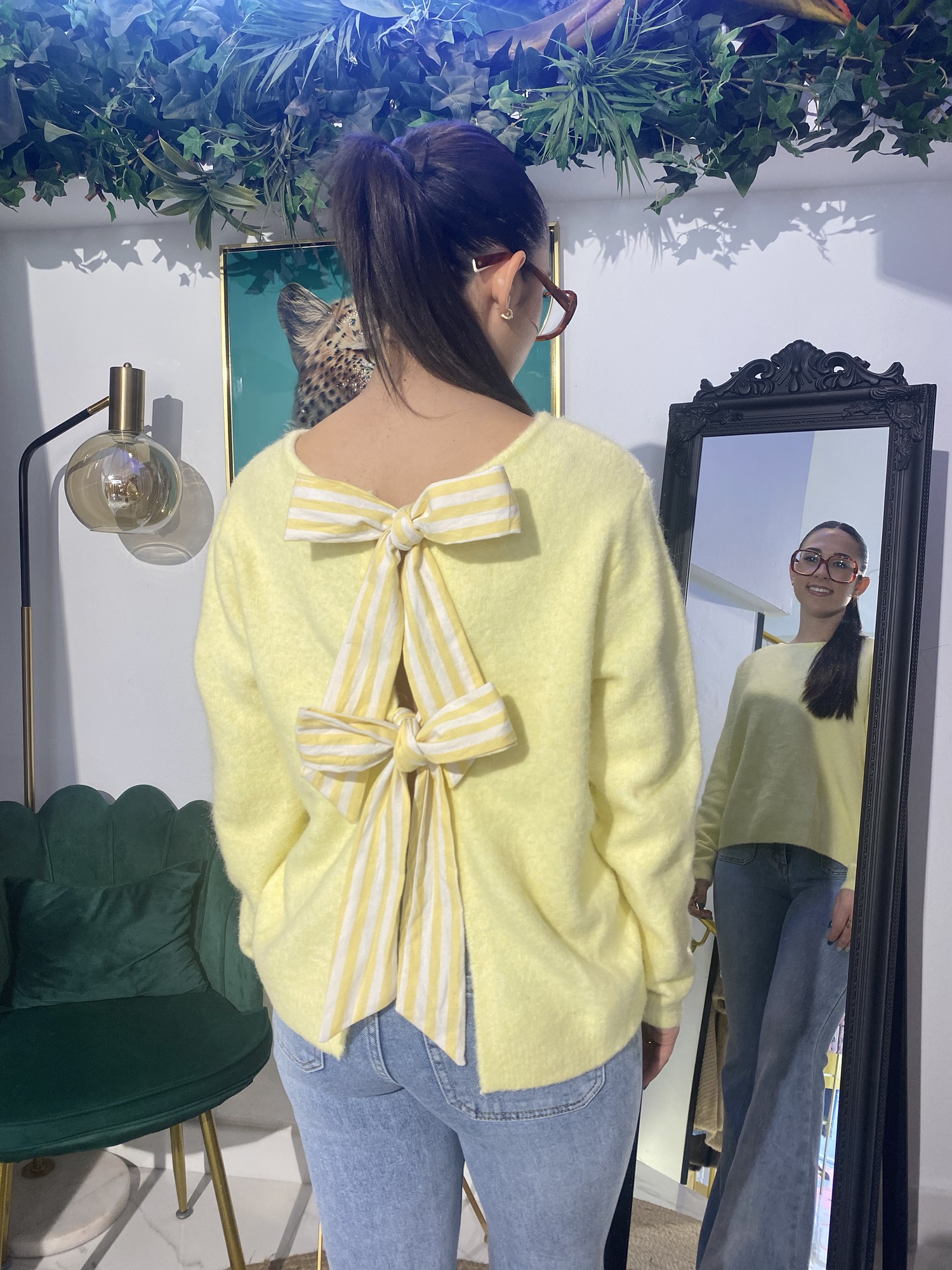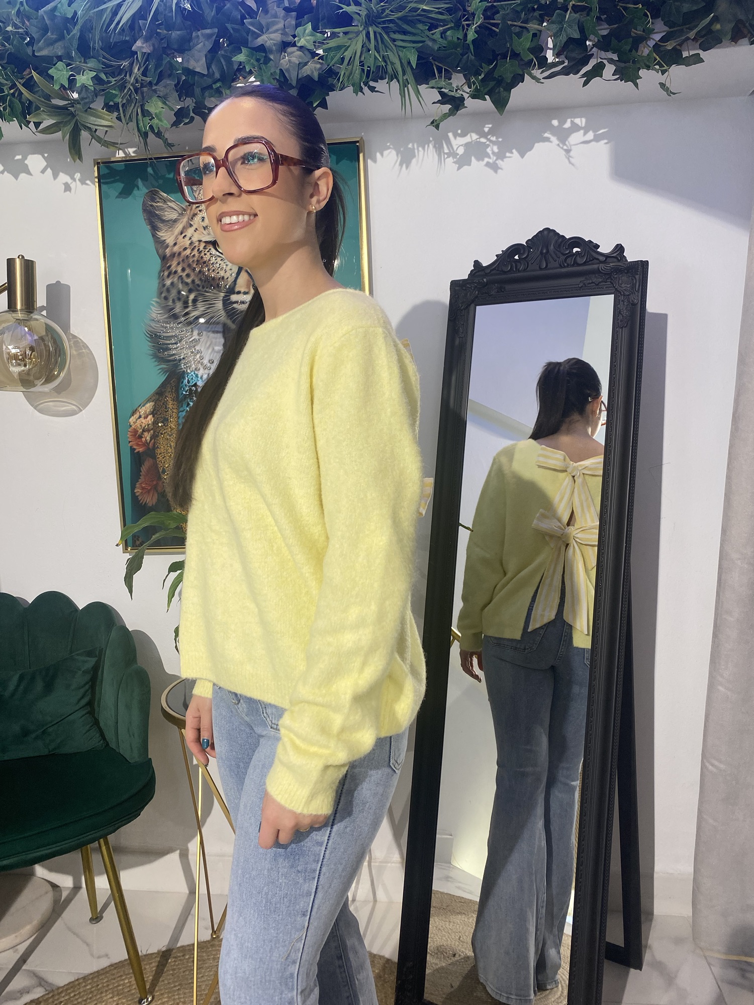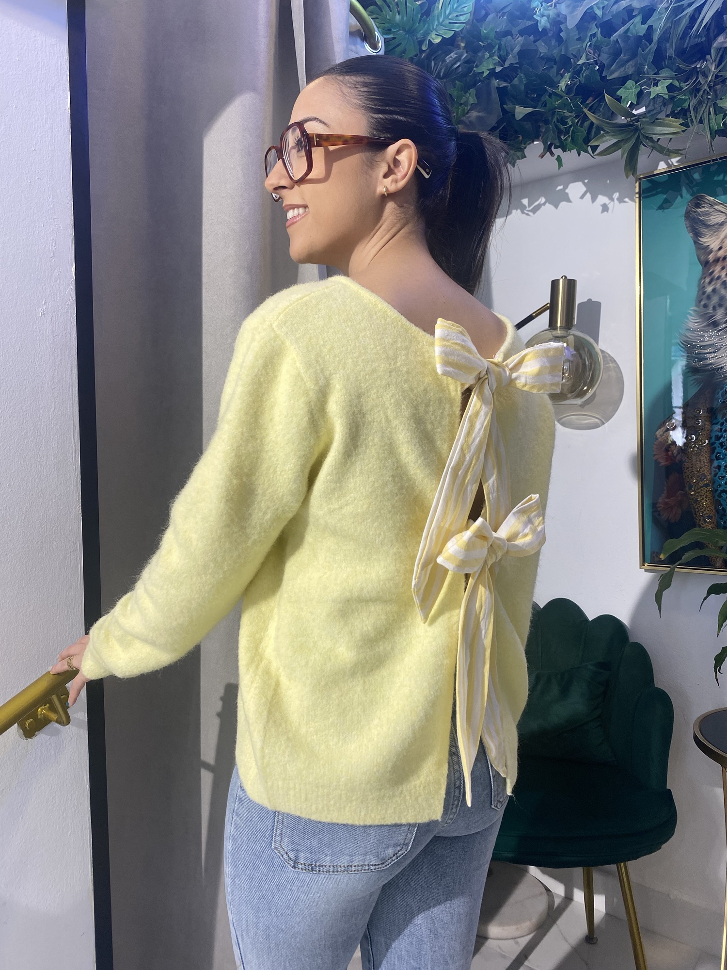 Este jersey de cuello caja con lazos en la espalda es una prenda imprescindible en tu armario. Su diseño atemporal te permite crear looks muy diferentes, desde un estilo casual con jeans y zapatillas deportivas hasta un outfit más arreglado con faldas o pantalones de vestir.