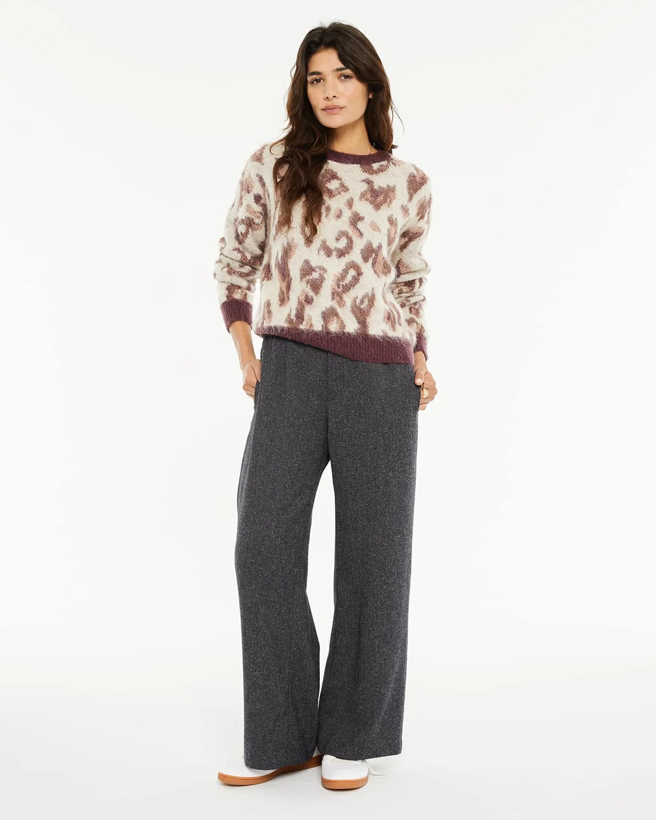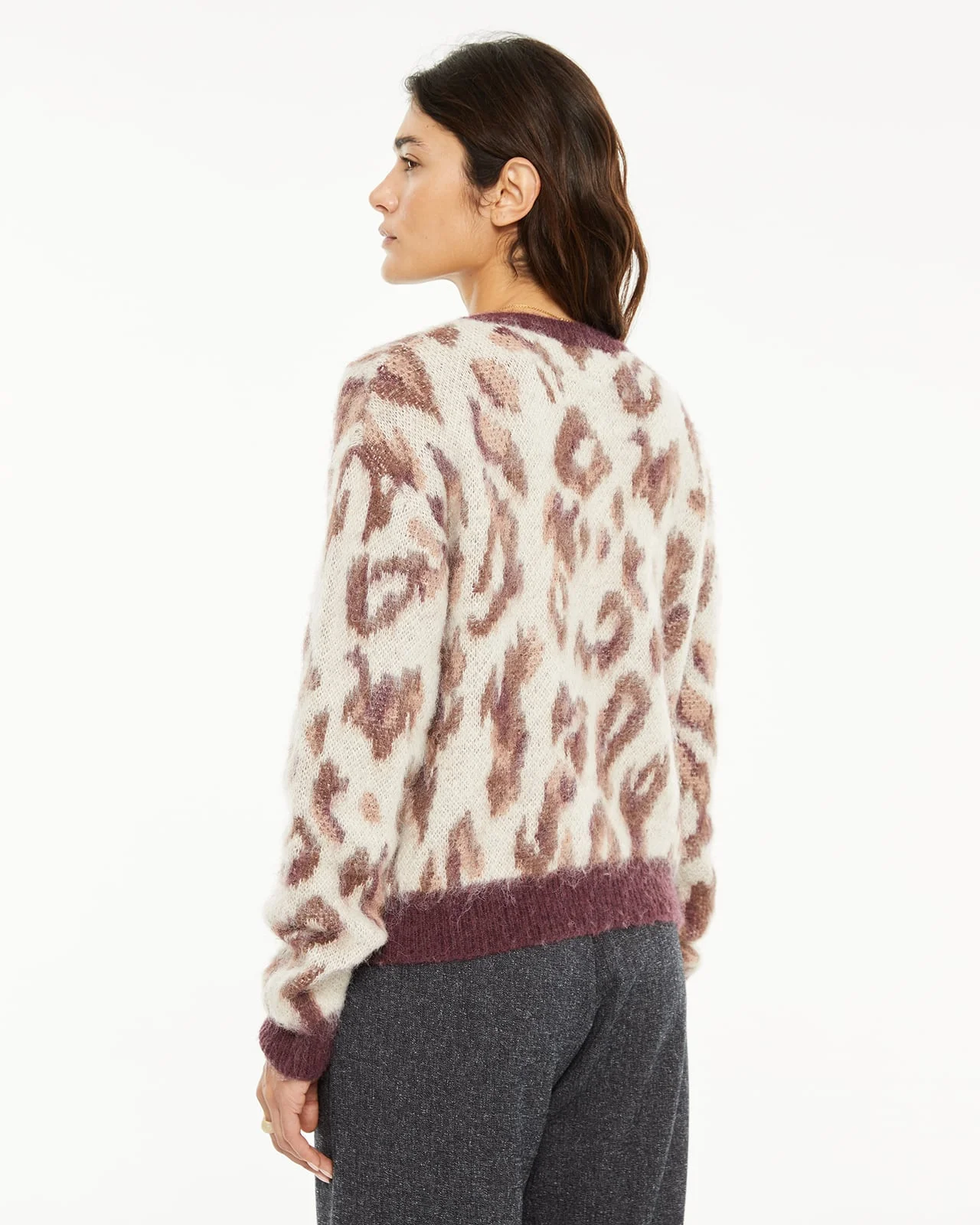 Jersey de mujer con jacquard de animal print, escote redondo y acabados en rib. Prenda sostenible.