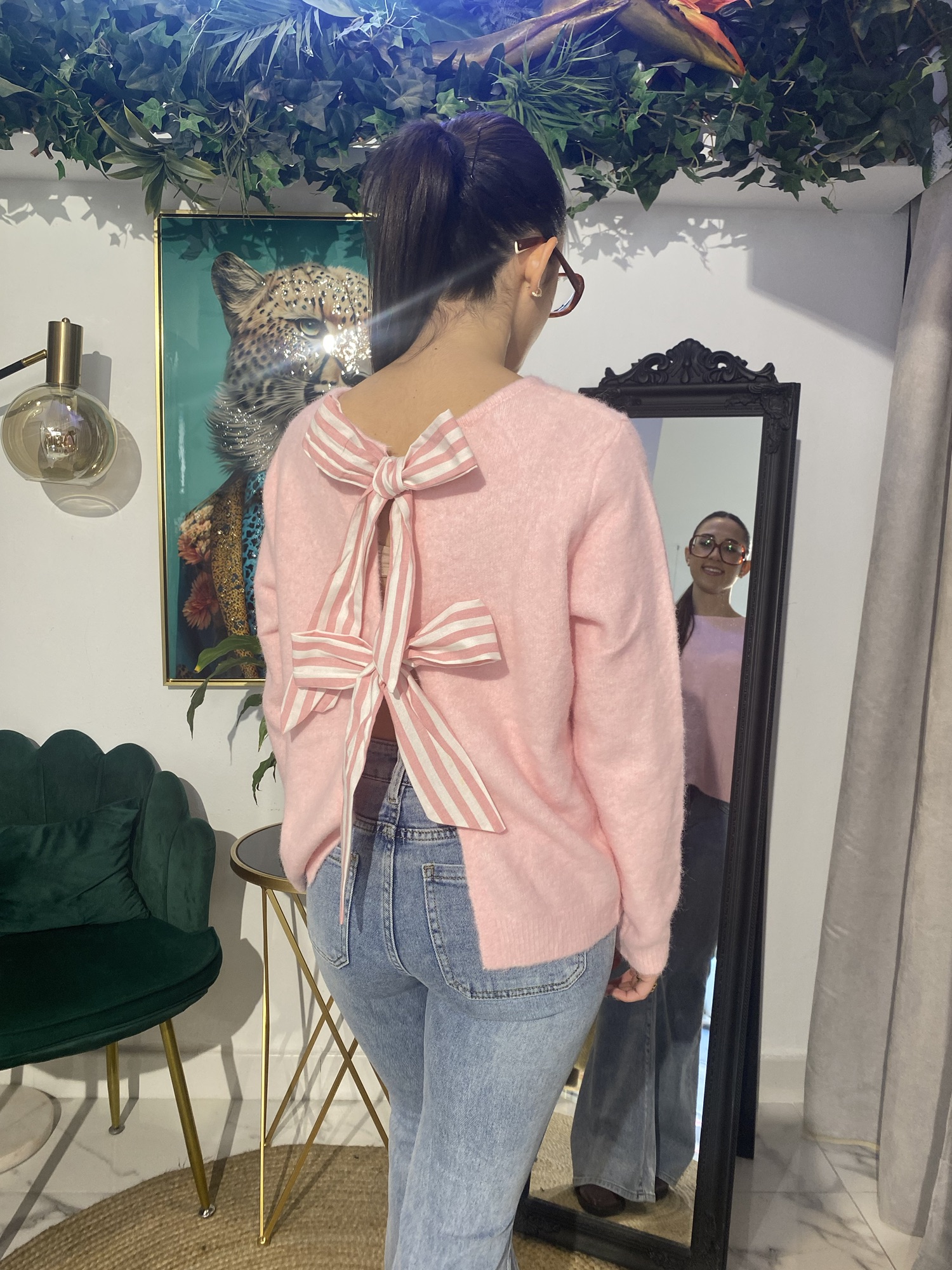 Sé el primero en valorar “Jersey rosa cuello caja lazos traseros”