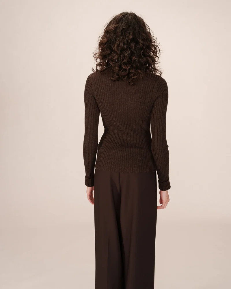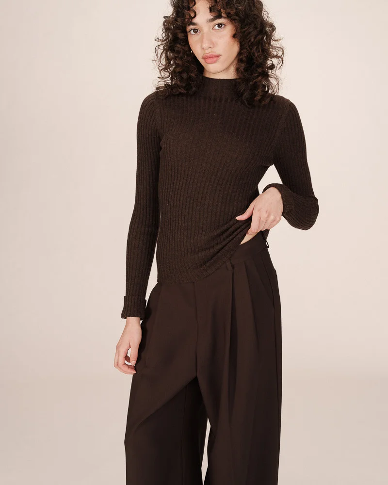 El suéter de manga larga SATURDAY es una prenda básica de moda de la colección Grace & Mila. Su corte ajustado realza las curvas y realza la silueta. Confeccionado en punto acanalado, el suéter ajustado SATURDAY presenta un escote alto y mangas largas con puños. Es una prenda imprescindible para cualquier armario de otoño/invierno.