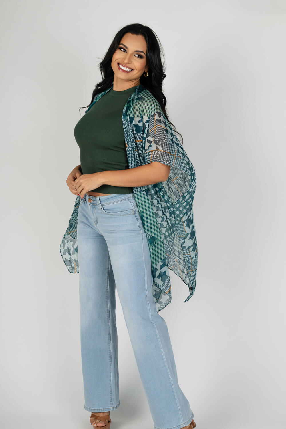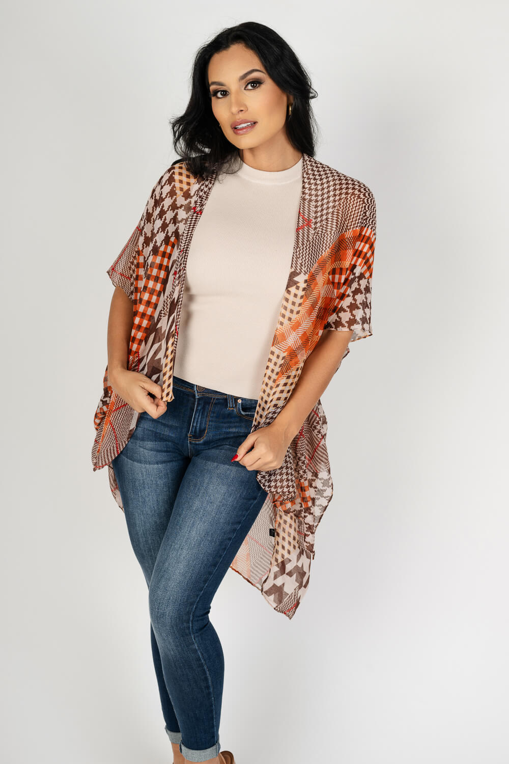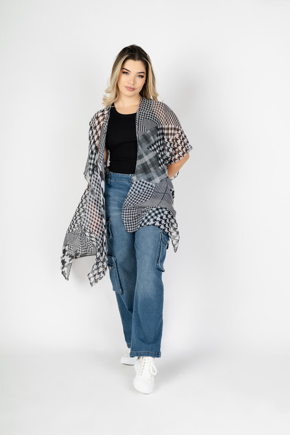 Kimono liviano estampado diente de perro (houndstooth)