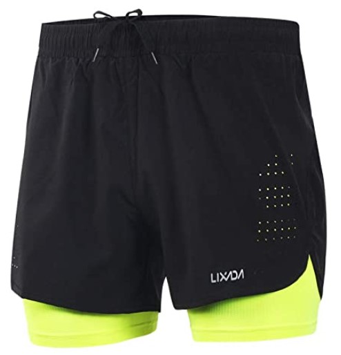 Lixada Hombres Pantalónes Cortos de Running 2-en-1, Pantalones Cortos de Atletismo, Pantalones Cortos de Fitness Maratón, Transpirable Pantalones+Secado Rápido