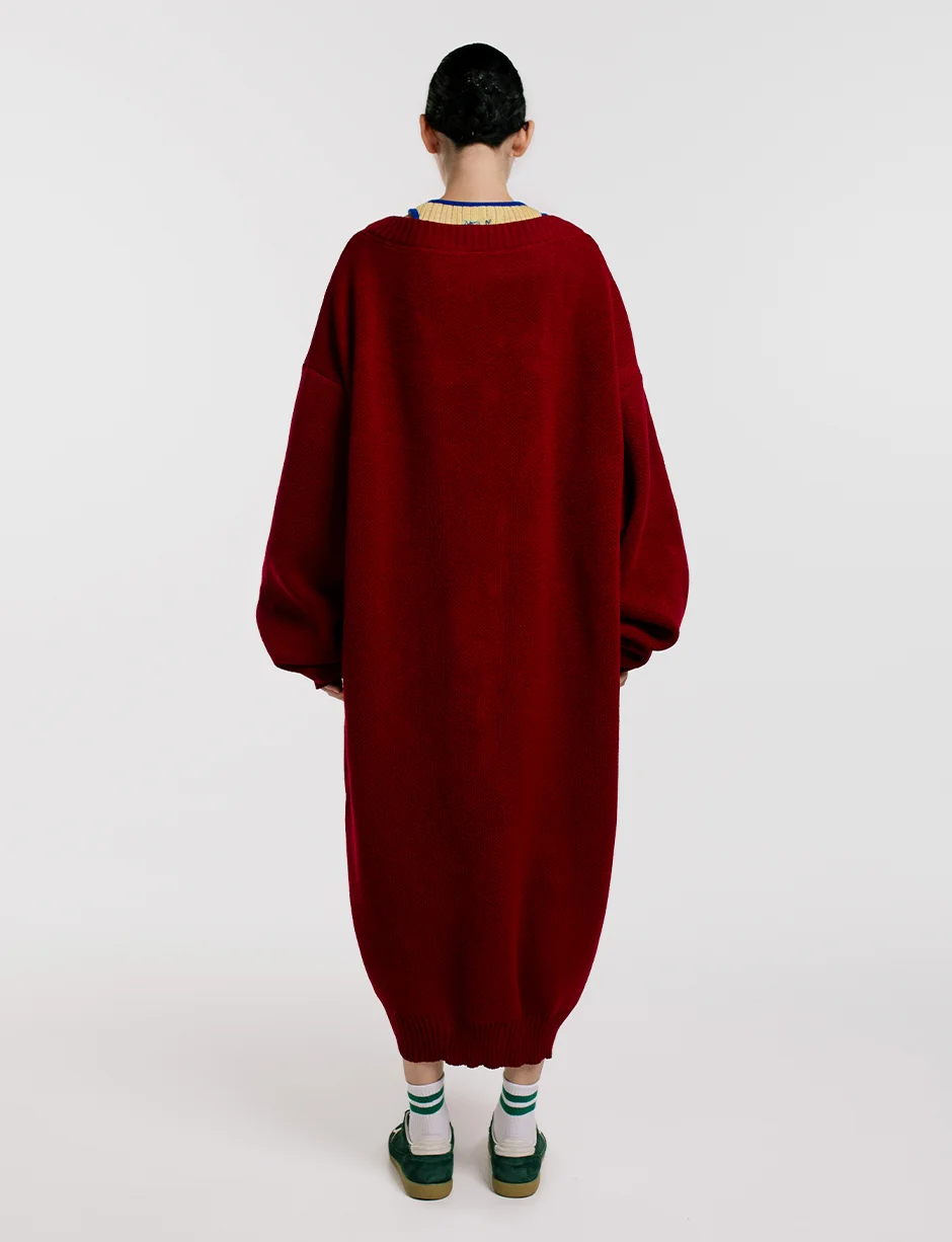 Maxi vestido en Hilo Hipoalergénico liso, Largo y versátil para estilizar múltiples looks. Tejida de punto, terminada y bordada a mano. Hecho en Sogamoso, Boyacá, Colombia.