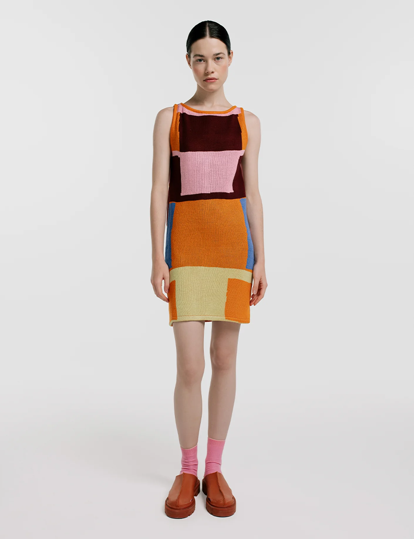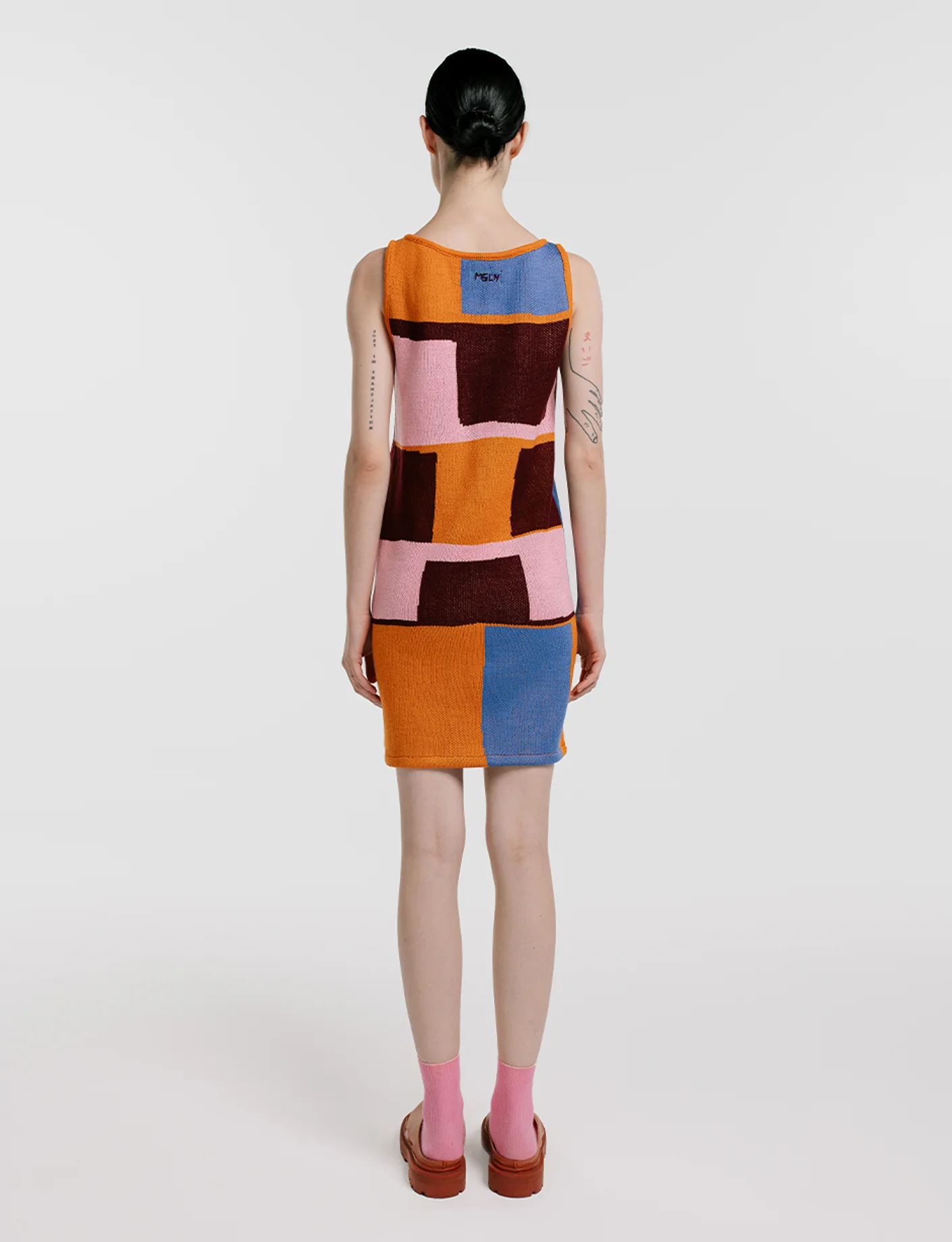 Minivestido tejido en Hilo Hipoalergénico con print a cuadros en colores brillantes. Fit ajustado con escote redondo. Tejido de punto, terminado y bordado a mano. Hecho artesanalmente en Sogamoso, Boyacá. Disponibilidad en todas las tallas.