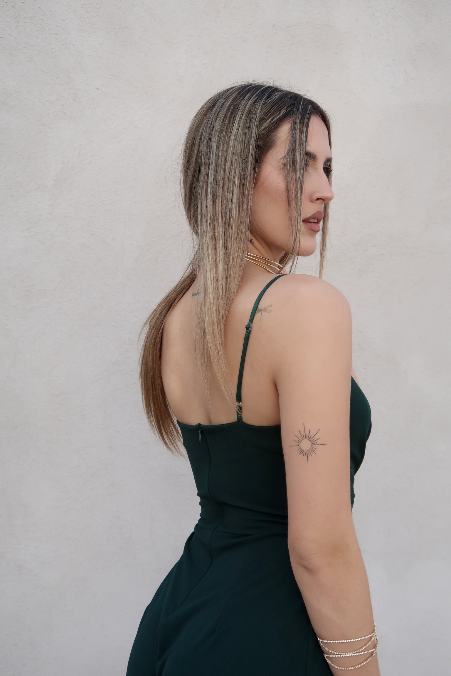 Nuestro Mono Mia es la opción perfecta si estas buscando una prenda favorecedora, elegante y cómoda. Su tejido elástico hará que te sientas confortable y su corte moderno y favorecedor son ideales para cualquier evento especial, el escote en forma de corazón se adapta a tu pecho a la perfección , además podras ajustarlo de los tiranyes para mayor comodidad. El pantalón de corte ancho y caída suave te dará un toque chic y moderno.
