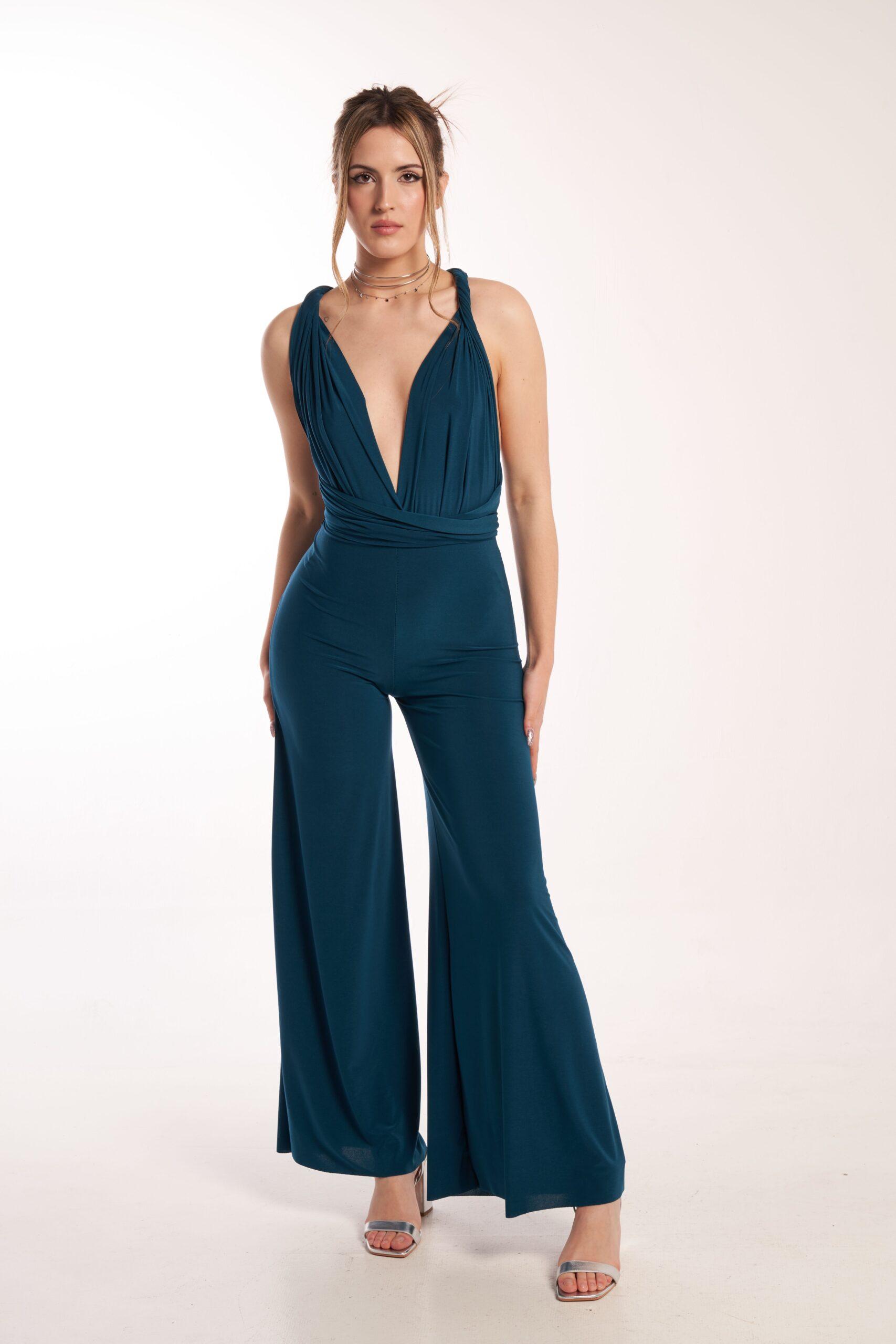 Su tejido elástico se ajusta a la cintura y a las caderas, es fluido en las piernas y la parte superior se adapta a todas las tallas de pecho.