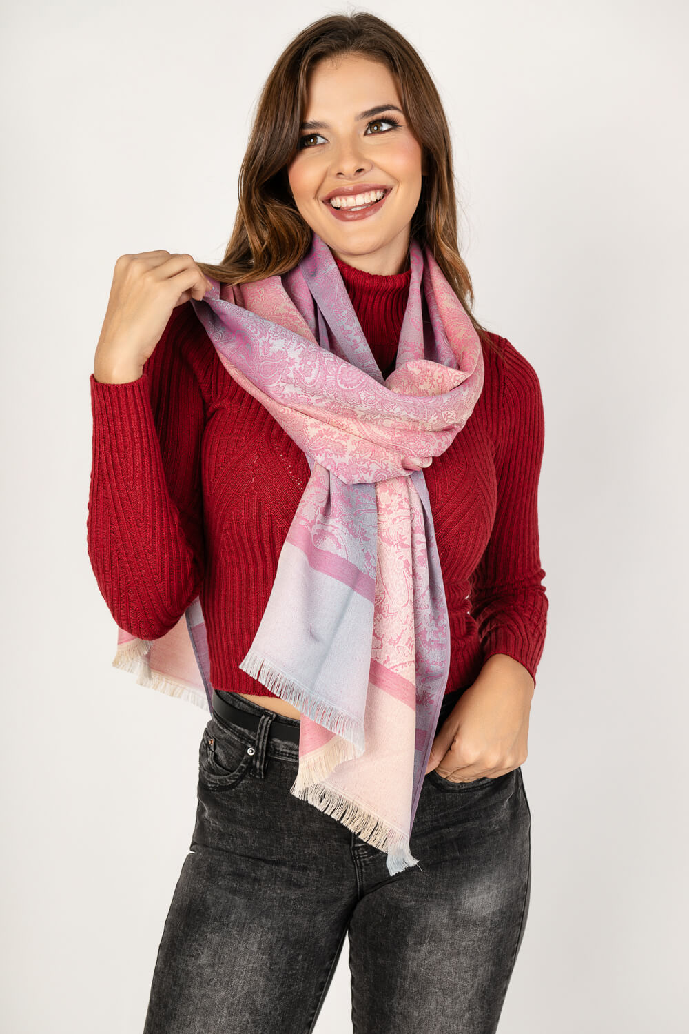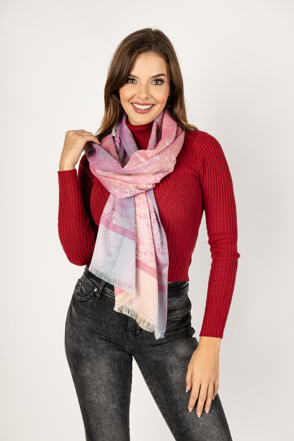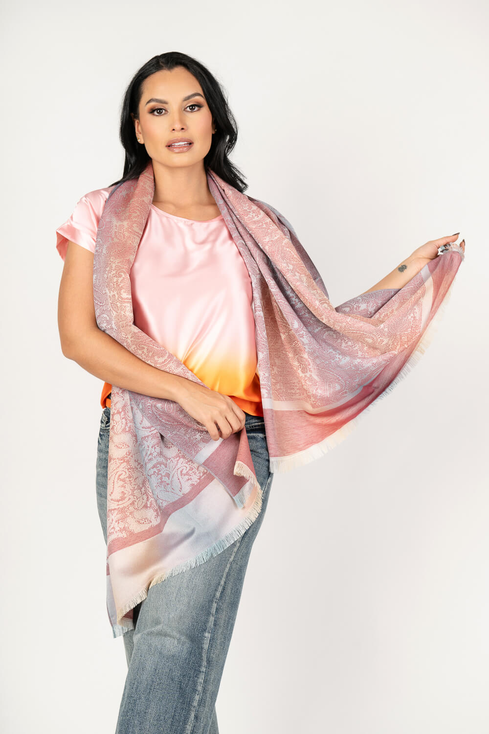Pañoleta tipo Pashmina con estampado de gota delicado y bloque liso