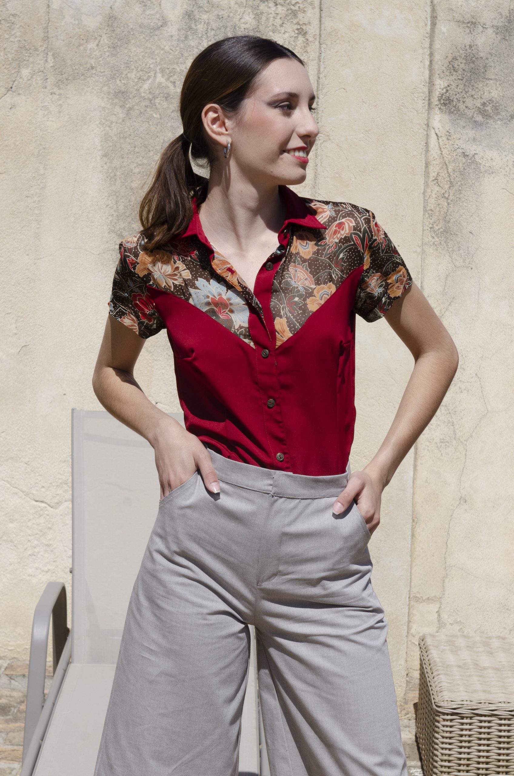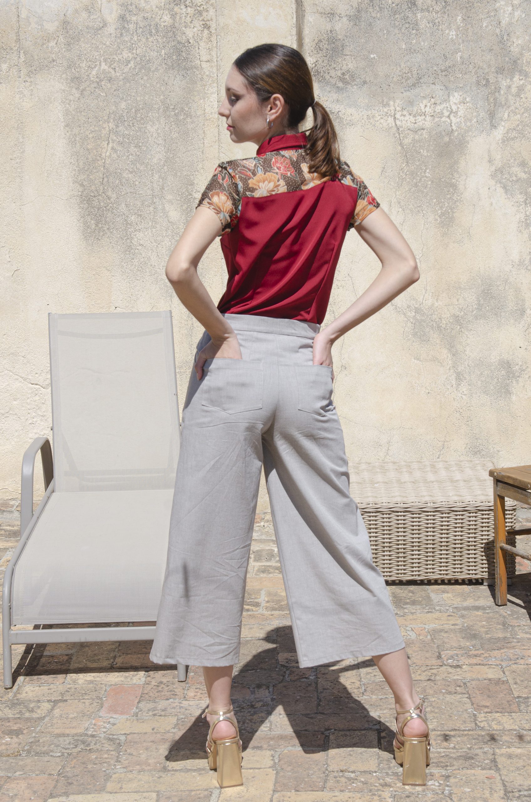 Pantalón culotte con cintura alta y largo midi en tejido de algodón con elastán. Bolsillos delanteros y en espalda y cierre clásico de cremallera y botón invisible. ¡Súper cómodo y muy favorecedor!