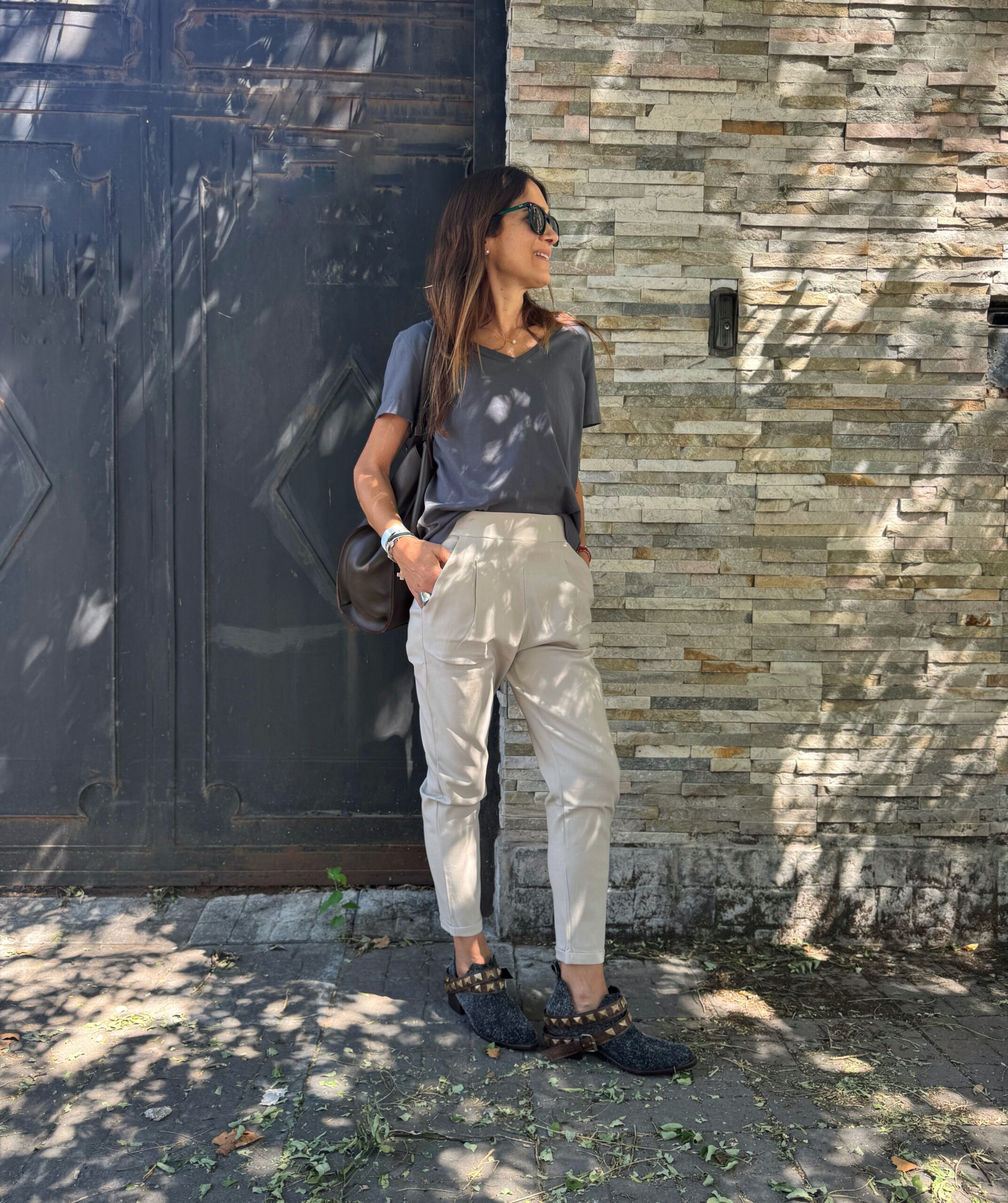 Babucha de bengalina primera calidad, cintura alta, con spandex. Talles del 0 al 4.
