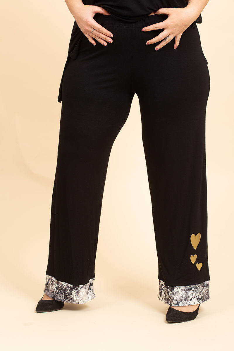 Pantalón ancho en talla grande con dorado, estilo en moda curvy