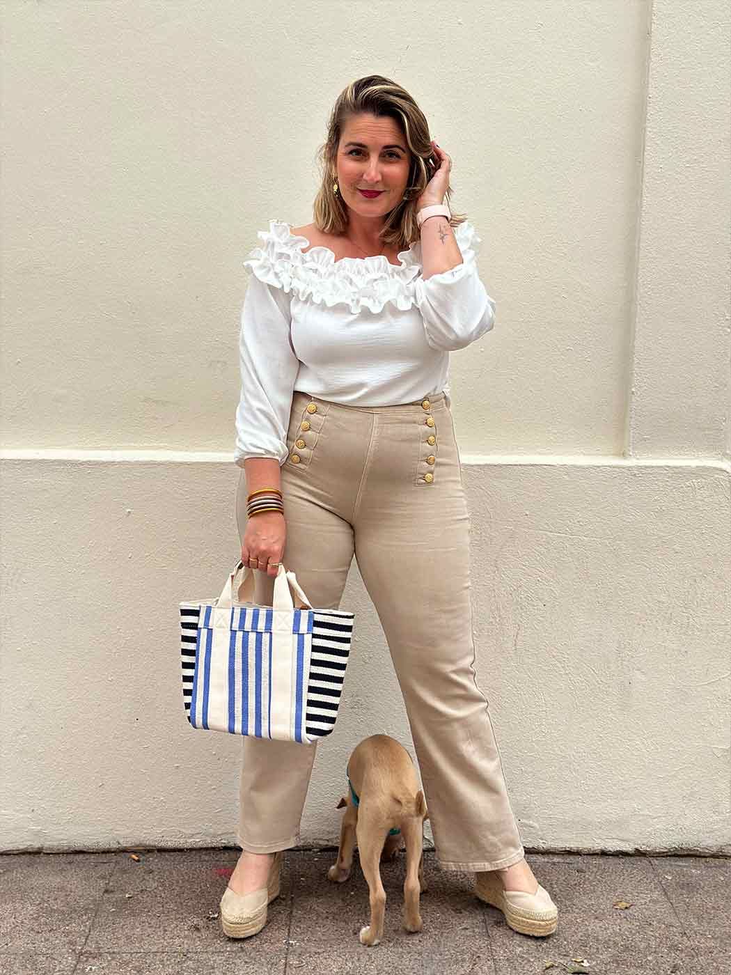Yo lo veo claro, tus pantalones favoritos, esa blusa que te flipa, un bolso precioso a contraste y… ¡terraceo con tus amigas! Look y plan perfectos para cualquier día.