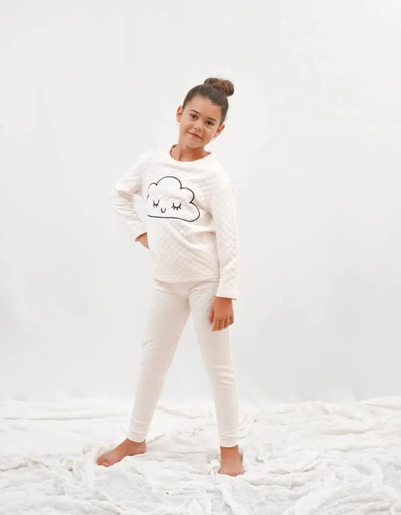 Su efecto acolchadito lo hace muy confortable y la ilustración de la nube le da el toque divertido. Con elástico en los tobillos para que evitar que el pijama se mueva durante la noche. Uno de nuestros pijamas más demandados en la selección de pijamas para niña.