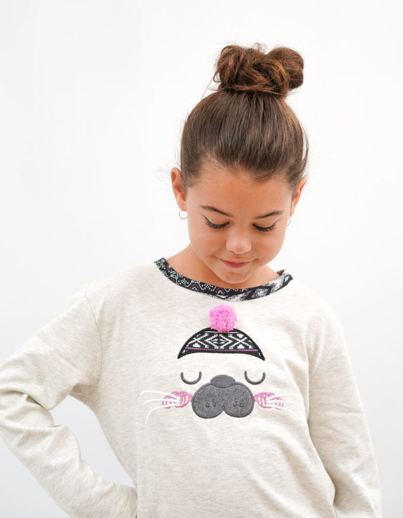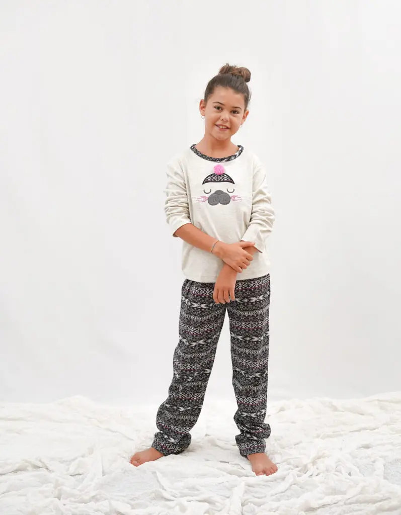 Pijama de niña algodón estampado fantasía , muy dulce y femenino. Compuesto con materiales de alta calidad 100% algodón.