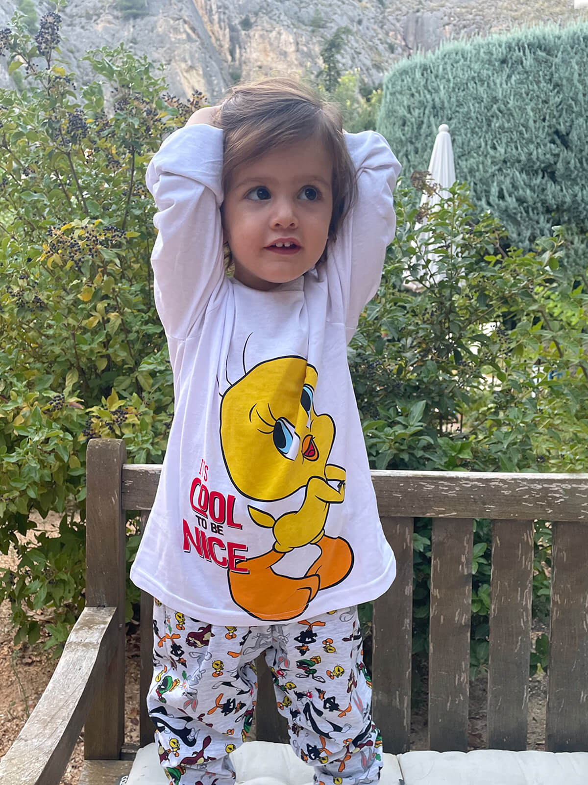 Pijama de niña de los Looney Tunes compuesto de 100% algodón.