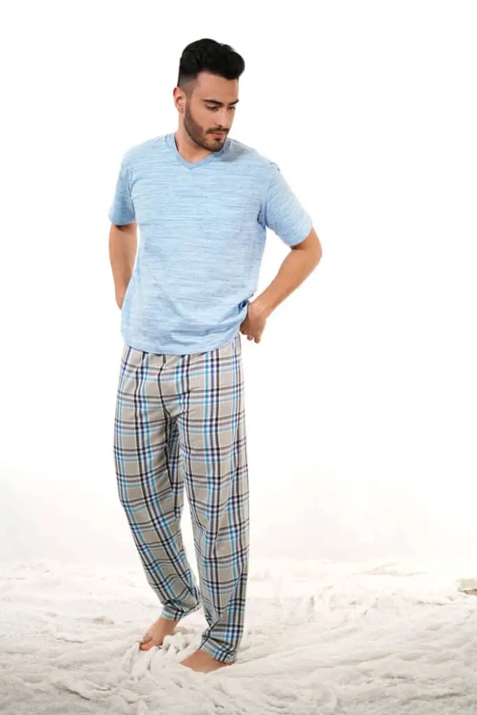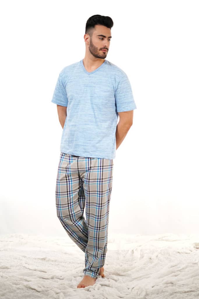 Pijama de pantalón largo con cuadros azules, una combinación ideal.