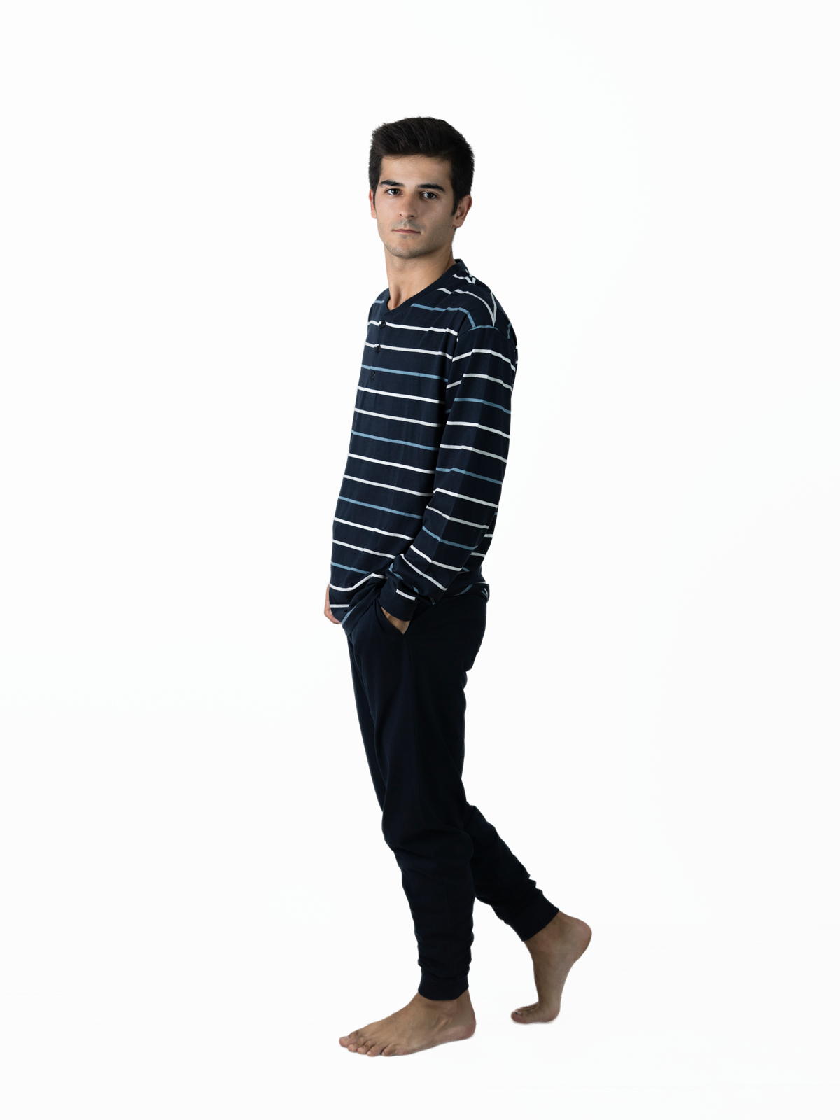 - Puños en la Camisa y el Pantalón: Los puños en la camisa y el pantalón aseguran un ajuste perfecto y cómodo, evitando que el pijama se desplace mientras duermes o te relajas en casa.