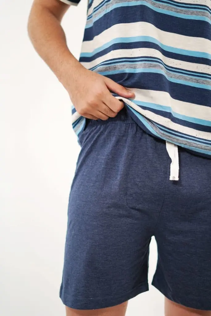 Se trata de un pijama de pantalón corto y manga corta hecho de 100% algodón. Las rayas siempre son tendencia en moda homewear y en este diseño no podían faltar.