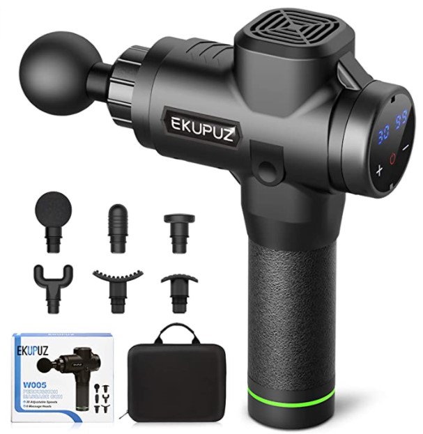 Pistola de Masaje Muscular, EKUPUZ Pistola Masaje Masajeadora Muscular de Tejido Profundo con 30 Niveles Ajustables, 6 Cabezales de Masaje y Pantalla LCD, para Relajación Recuperación Fatiga