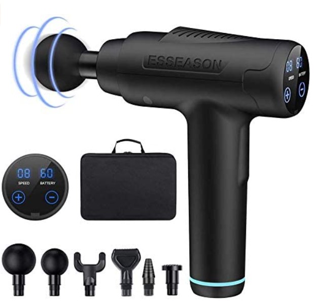 Pistola Masaje Profesional- ESSEASON Masajeador con 30 Niveles Ajustables Pistola Masajeadora Muscular 6 Cabezas de Masaje, Ultra Silencioso, Pantalla LCD, Aliviar el dolor de hombro y pierna