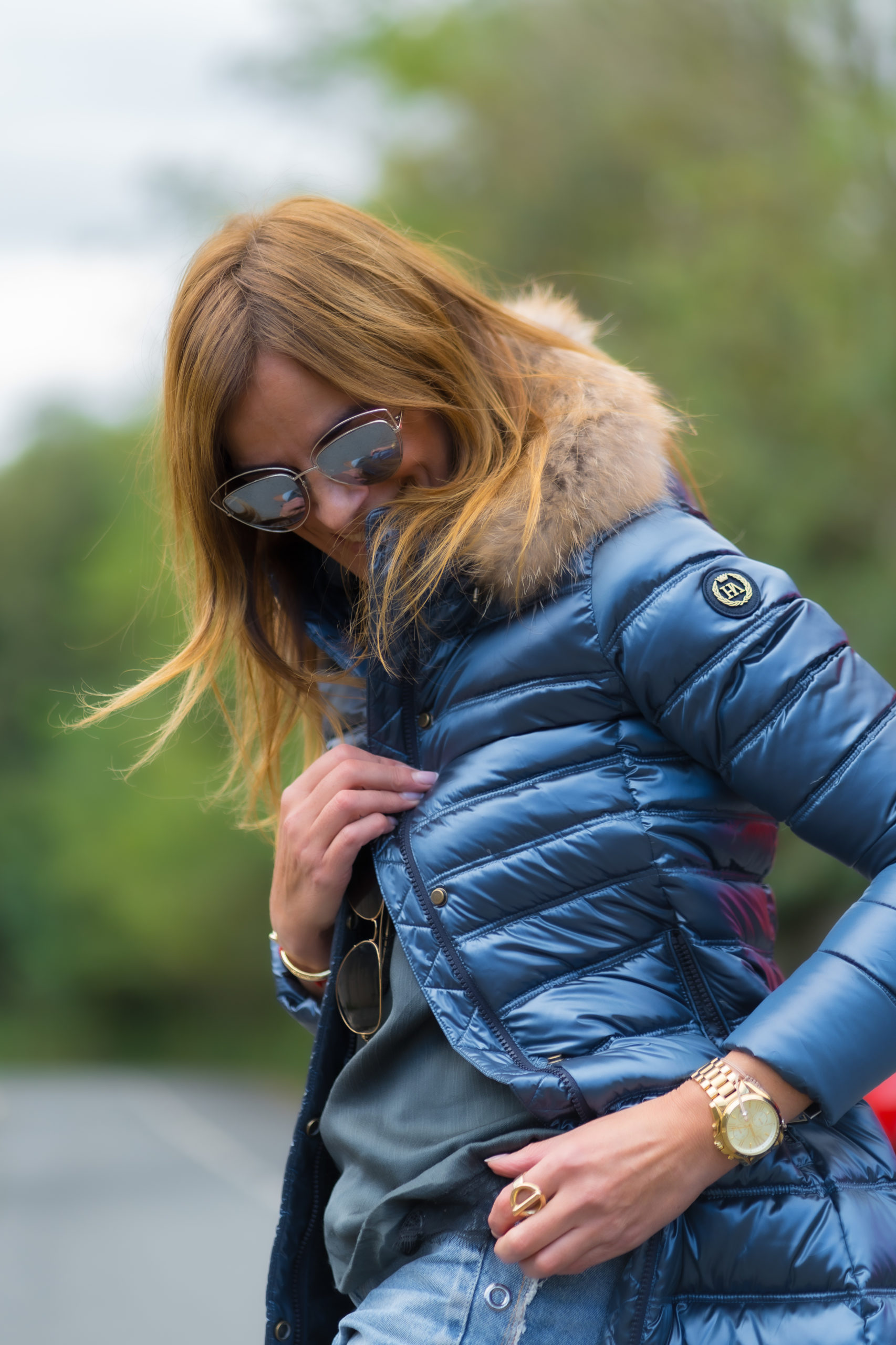 La parte interior del plumífero, con bolsillo, en color azul marino en contraste con el color exterior que aporta a la prenda un signo de distinción y cuidado. - Composición