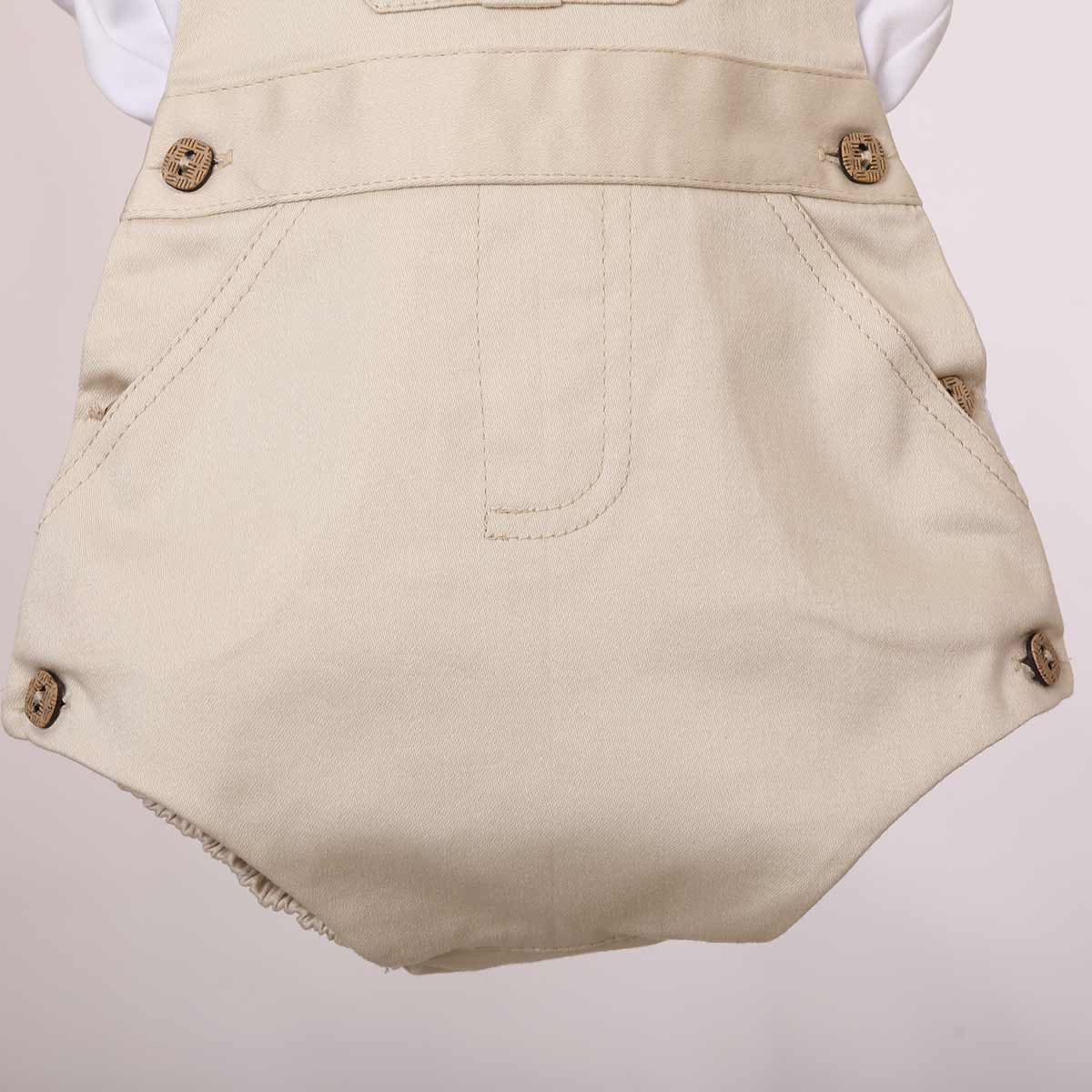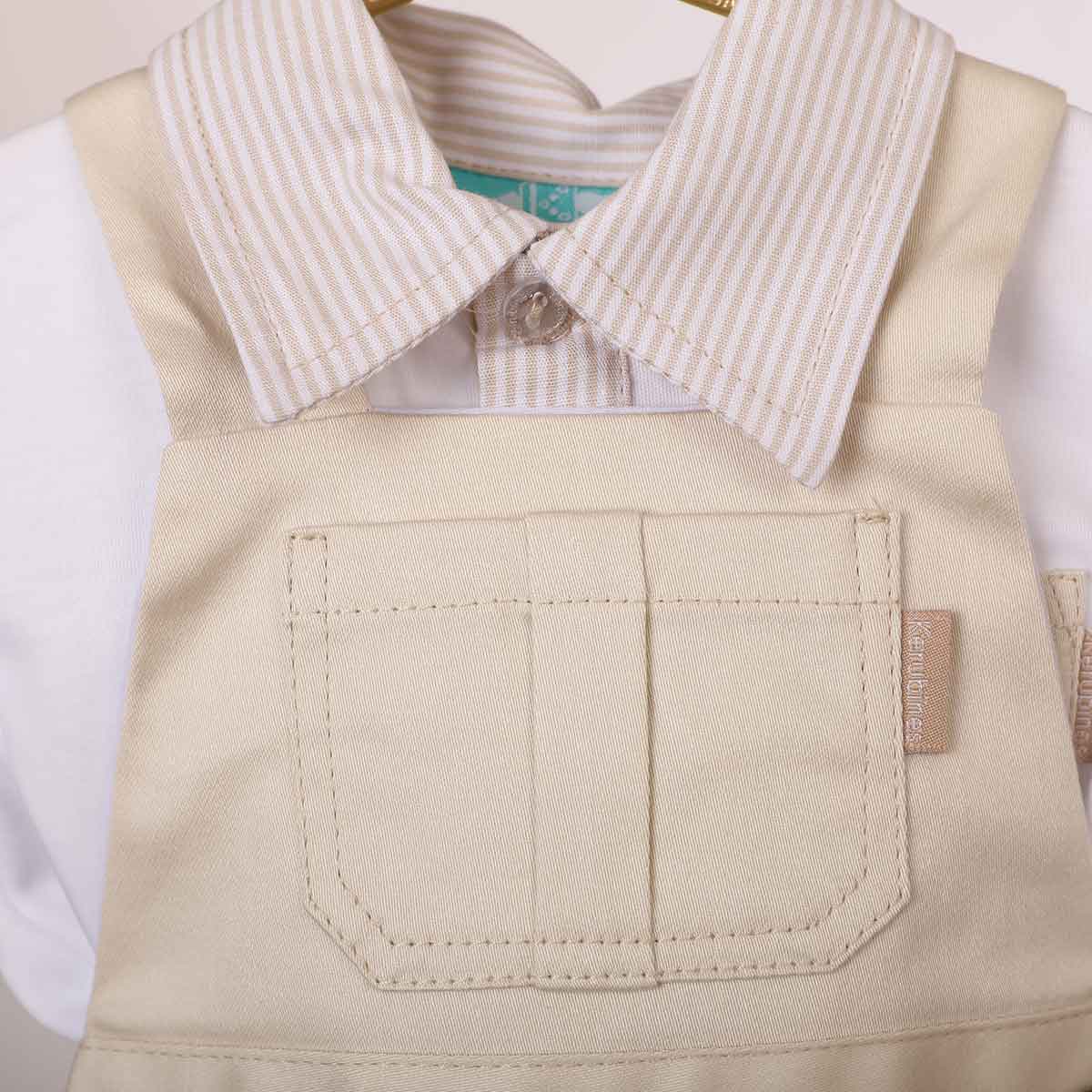 Romper de niño camel con bolsillo+camiseta en algodon pima. Modelo fresco y cómodo para pasear con mamá. Confeccionado en tela 100% algodón.