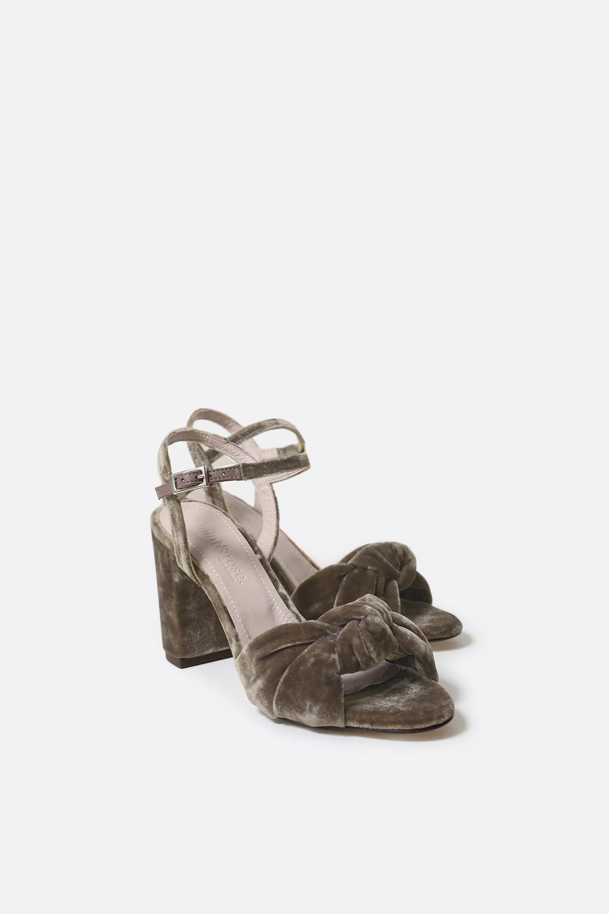 Esta sandalia recoge muy bien el pie gracias a las dos tiras delanteras unidas por un lazo. Pulsera regulable al tobillo, con hebilla dorada y tacón en bloque de 8 cm. Acolchado en la plantilla para dar mayor comodidad.