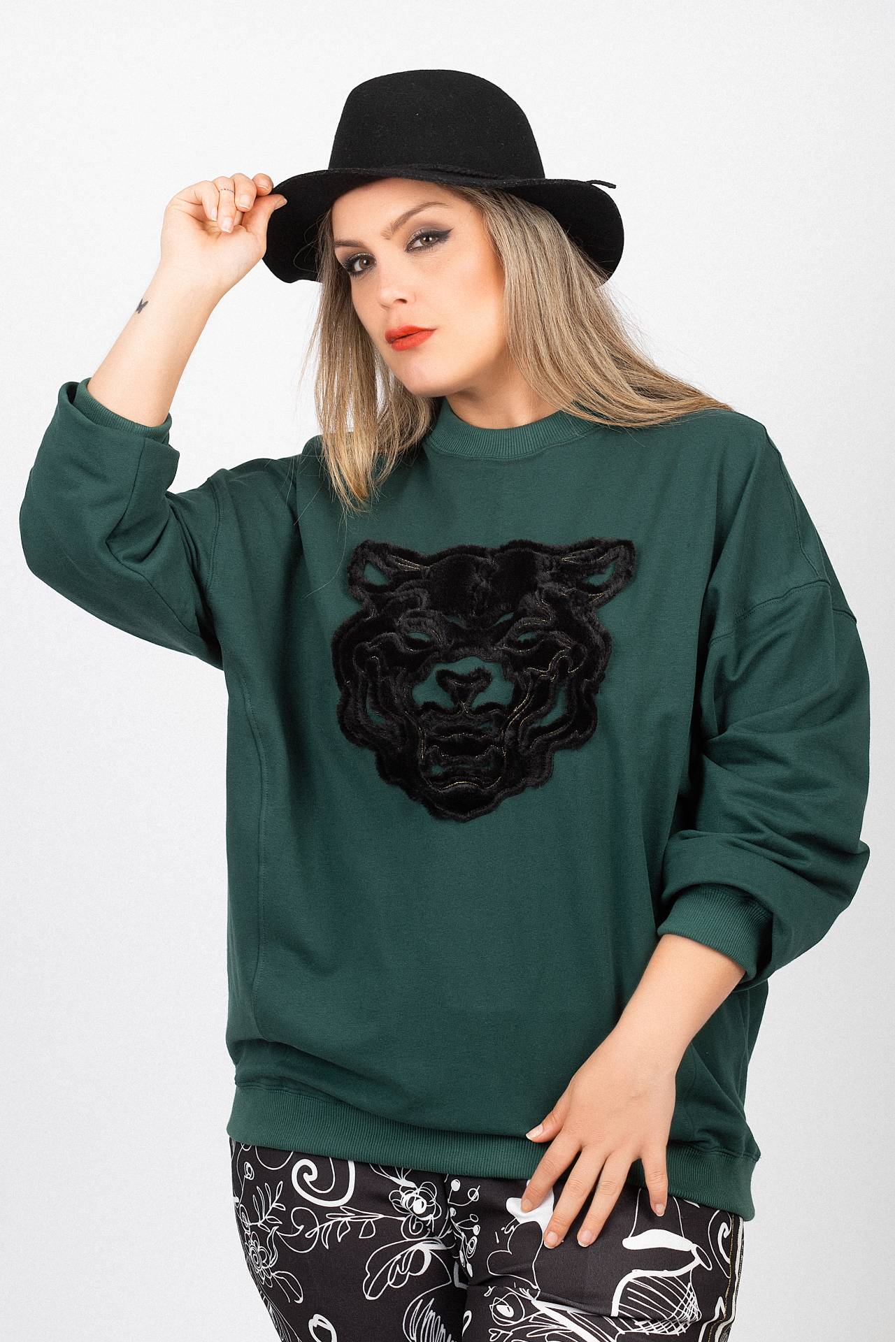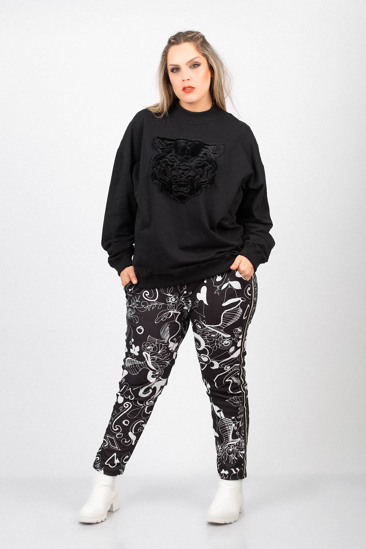 Sudadera mujer curvy con león de manga larga sin capuchas.