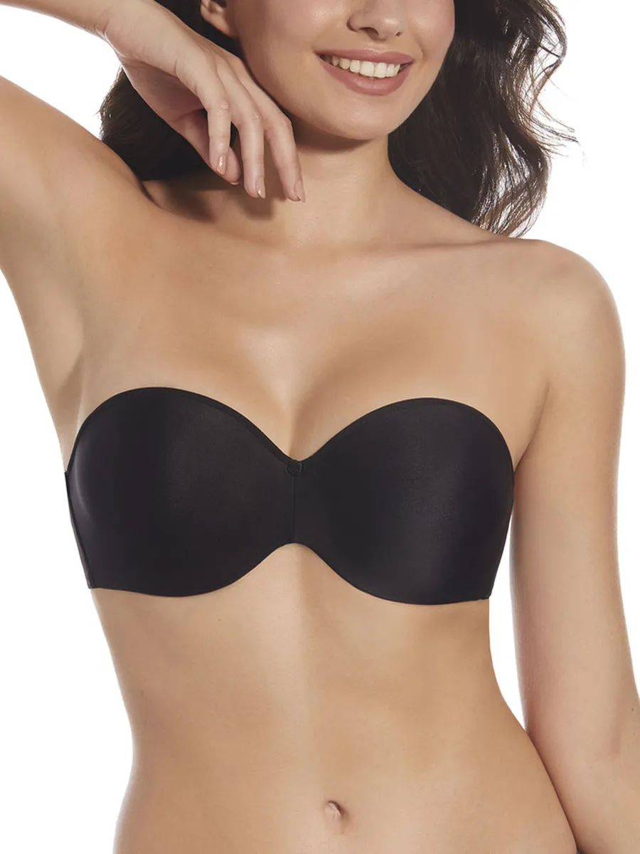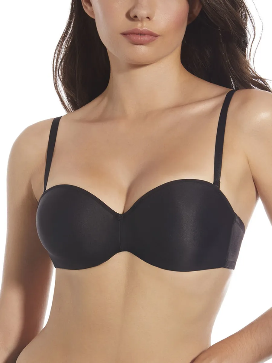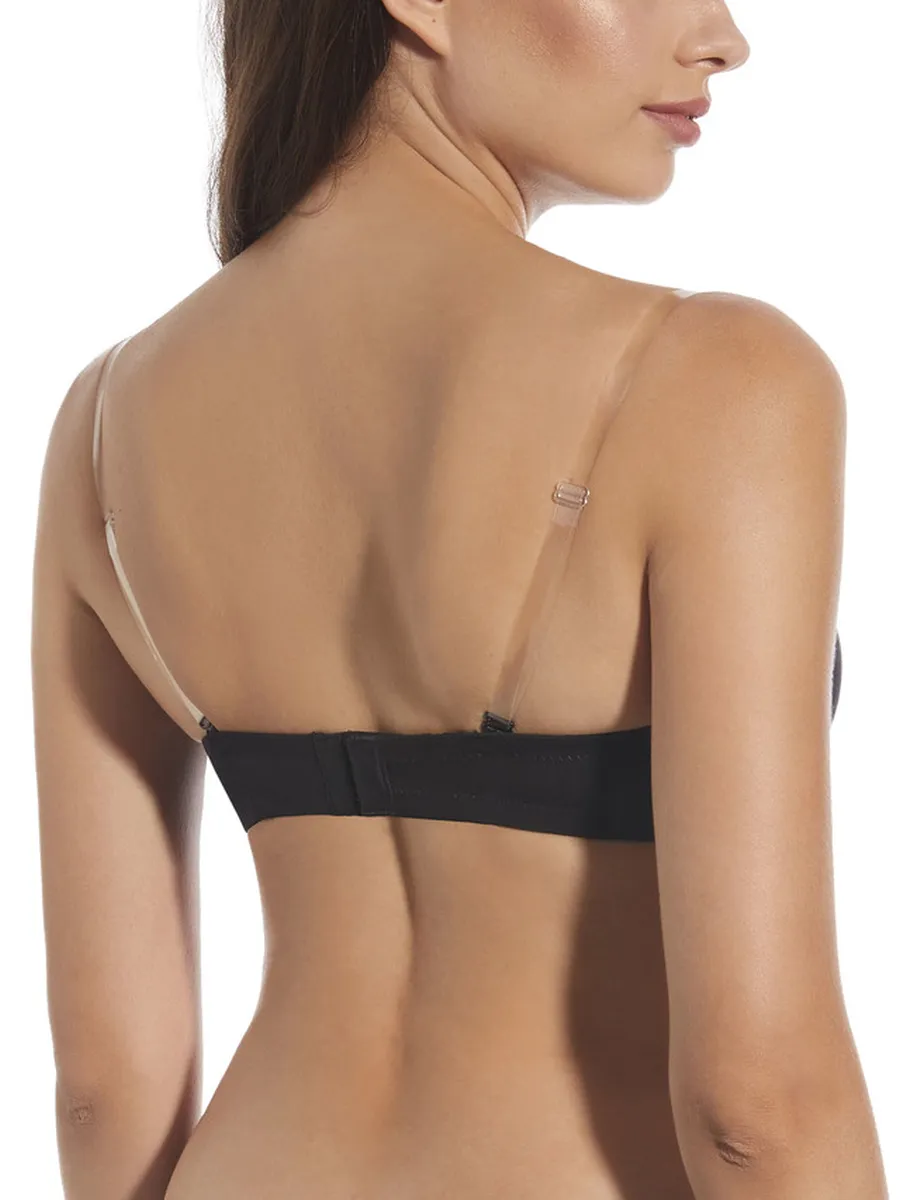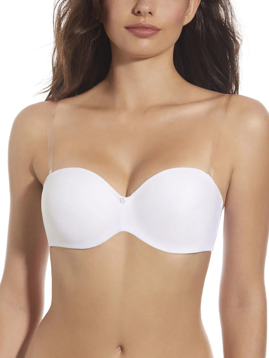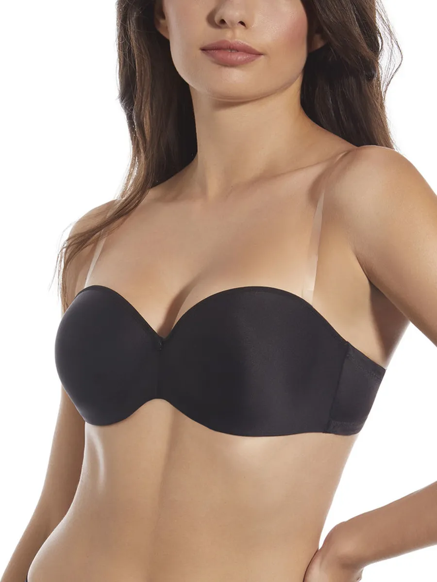 Sujetador básico de microfibra, con aros sin tirantes y copa de relleno. Incluye juego de tirantes textiles e invisible.