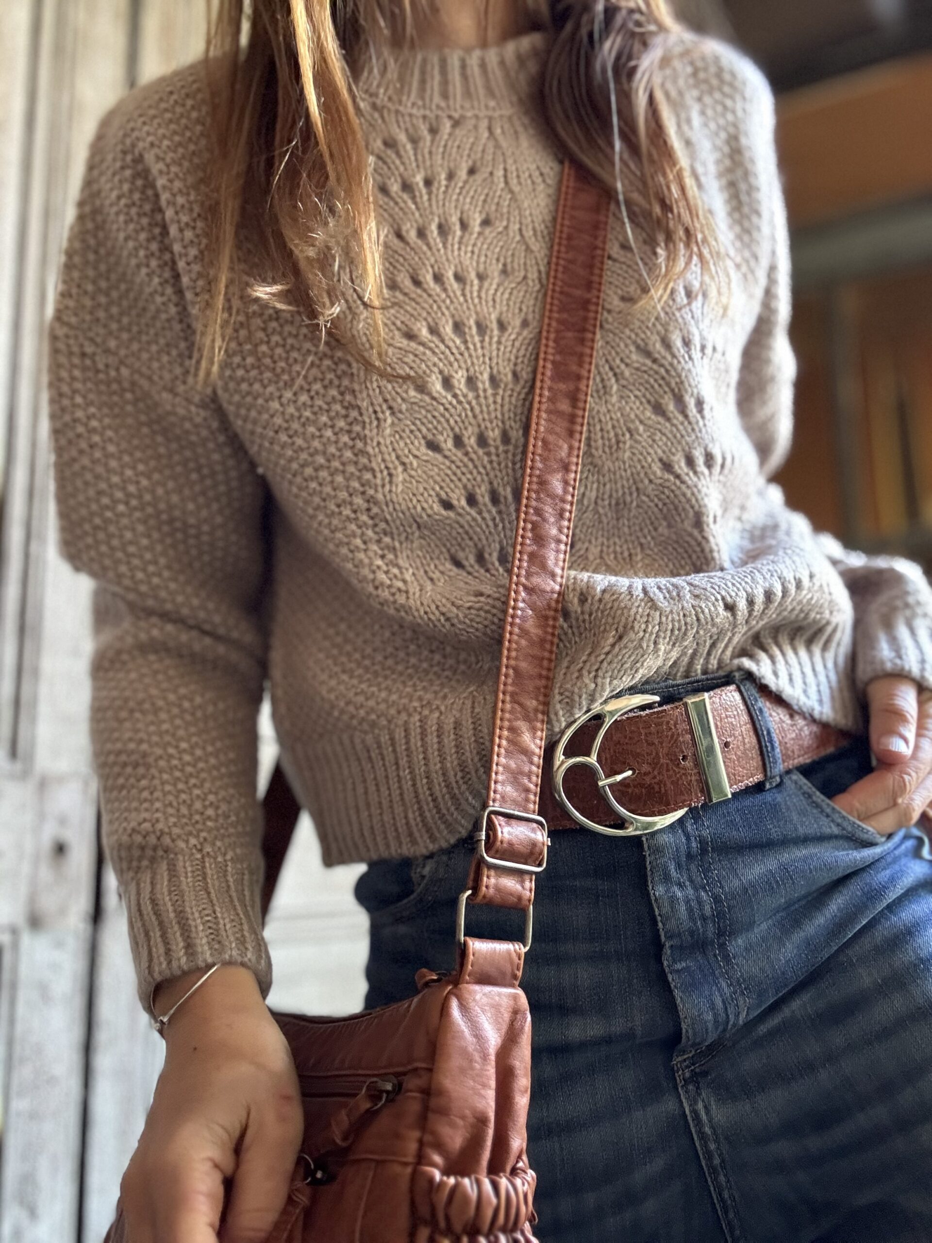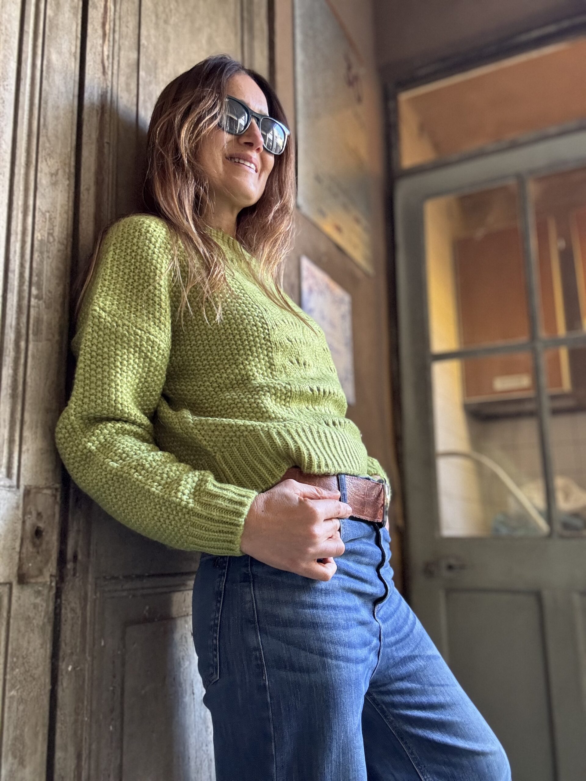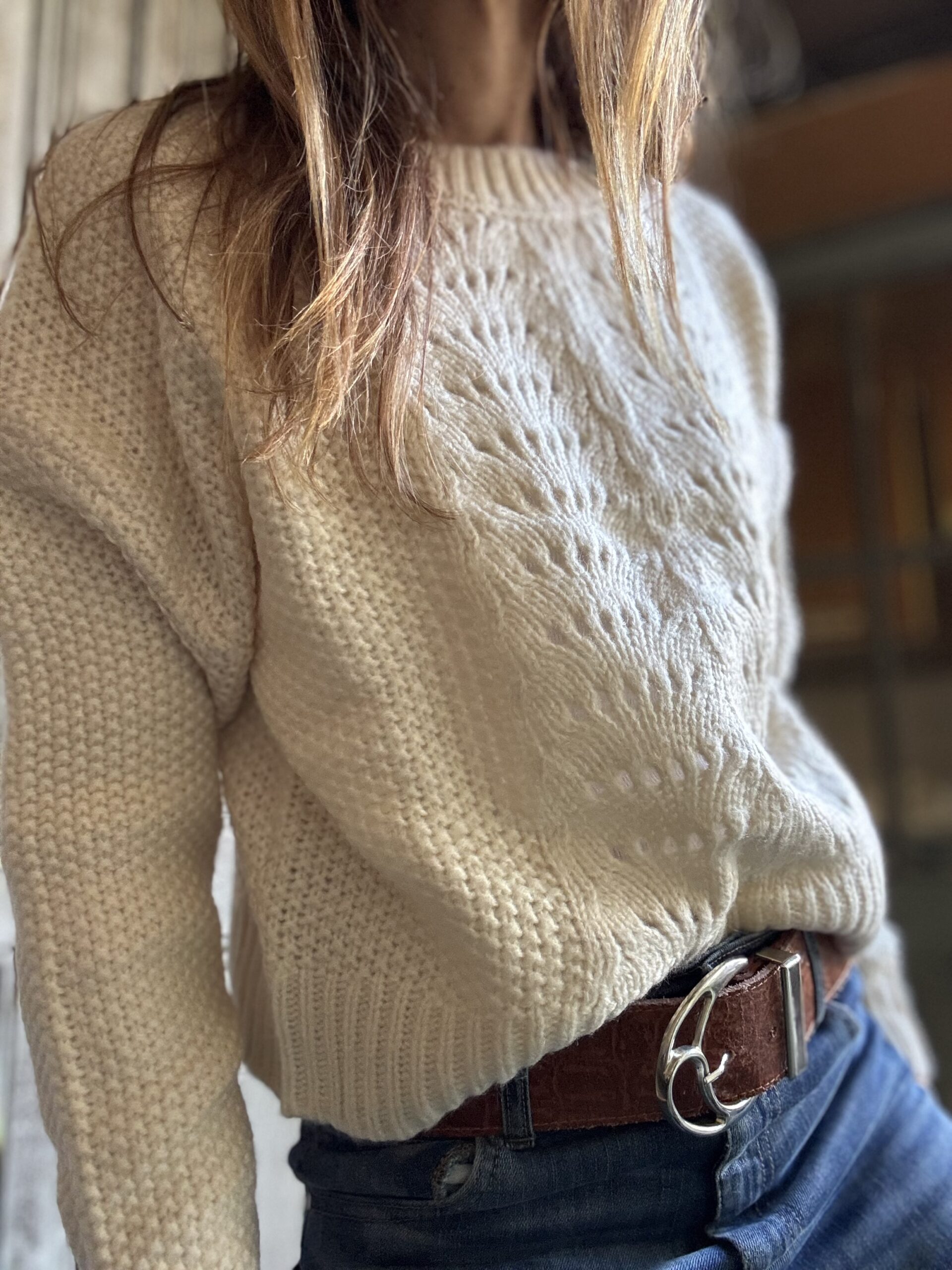 Sweater confeccionado en punto arroz, cuello redondo, calado. Colores moca, bordo, crudo y verde.