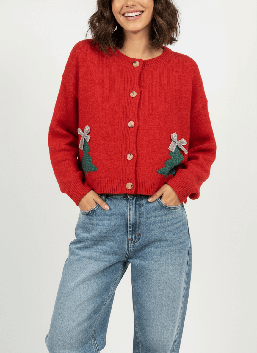 Sweater tipo cardigan con arbolitos