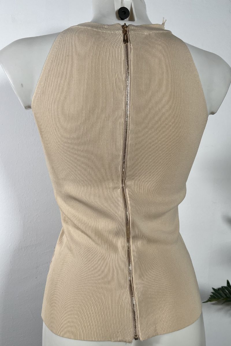 La cremallera trasera no solo añade un toque de modernidad, sino que también facilita vestirse con estilo y comodidad. Diseñado como talla única, abarcando desde la 34 hasta la 40, el Top Alone se adapta a diversas figuras y tallas, brindando una experiencia de moda inclusiva.