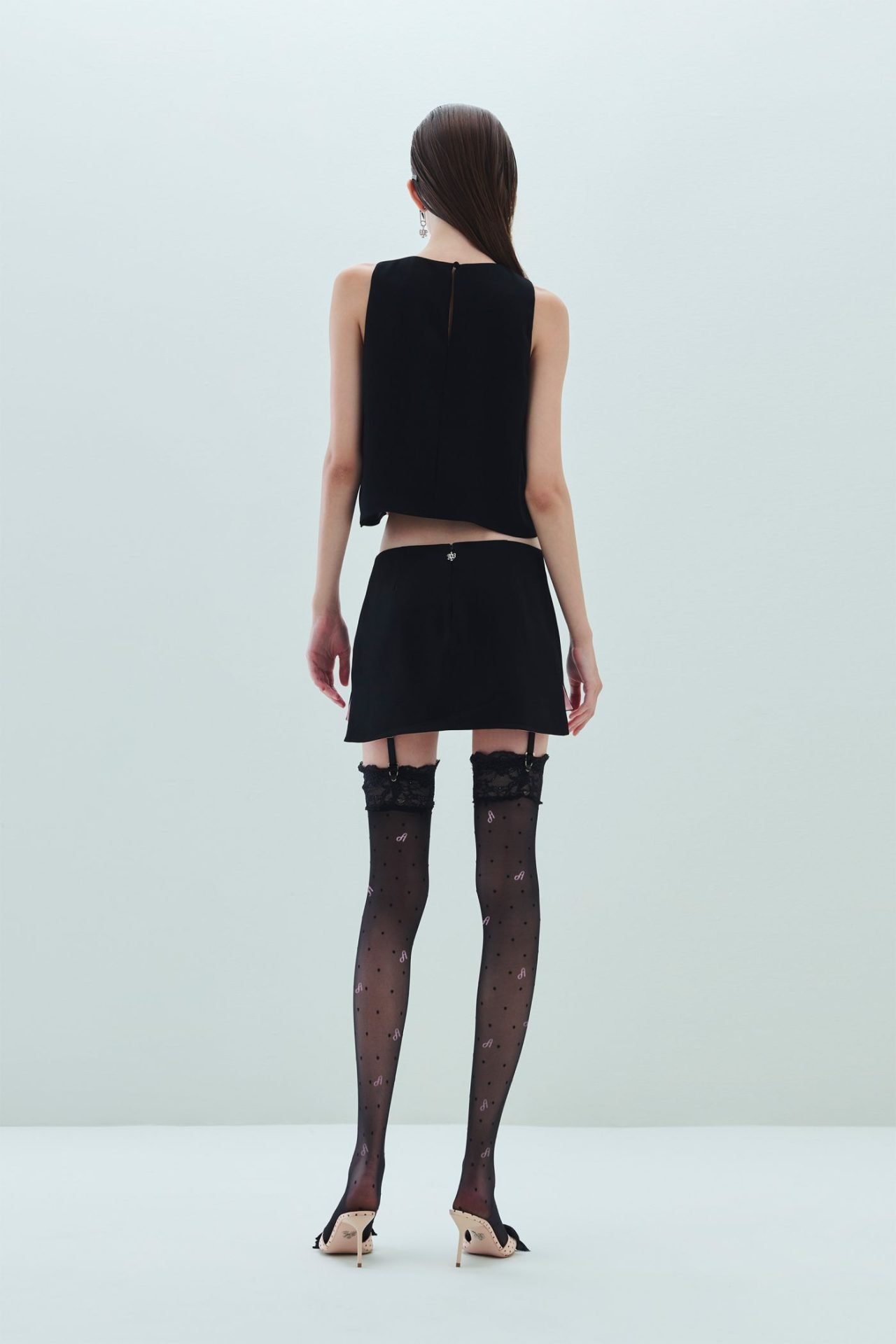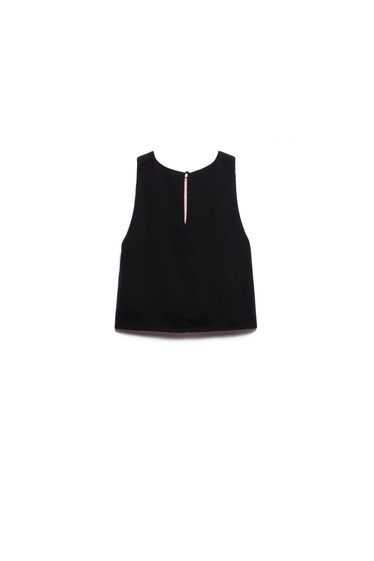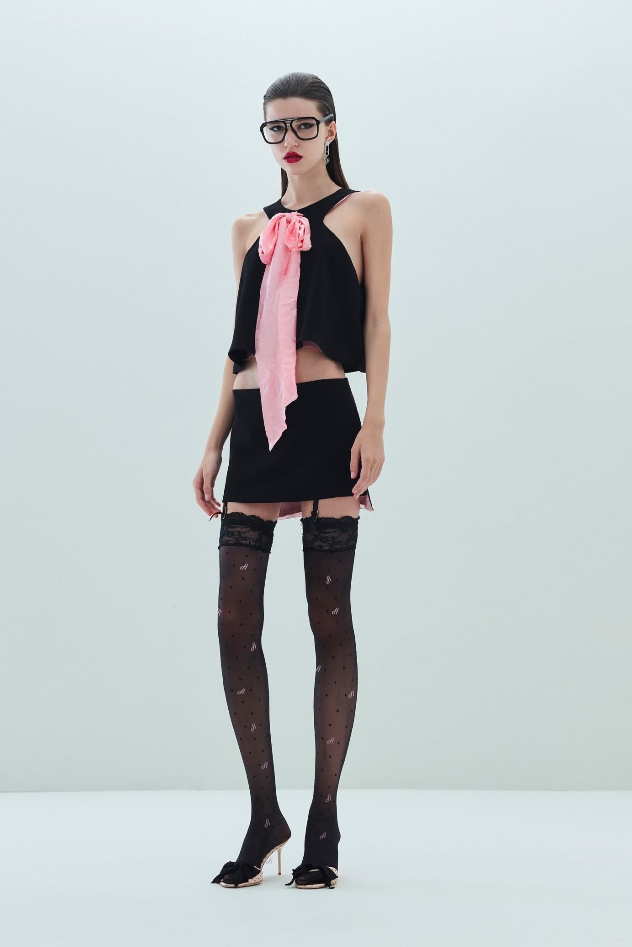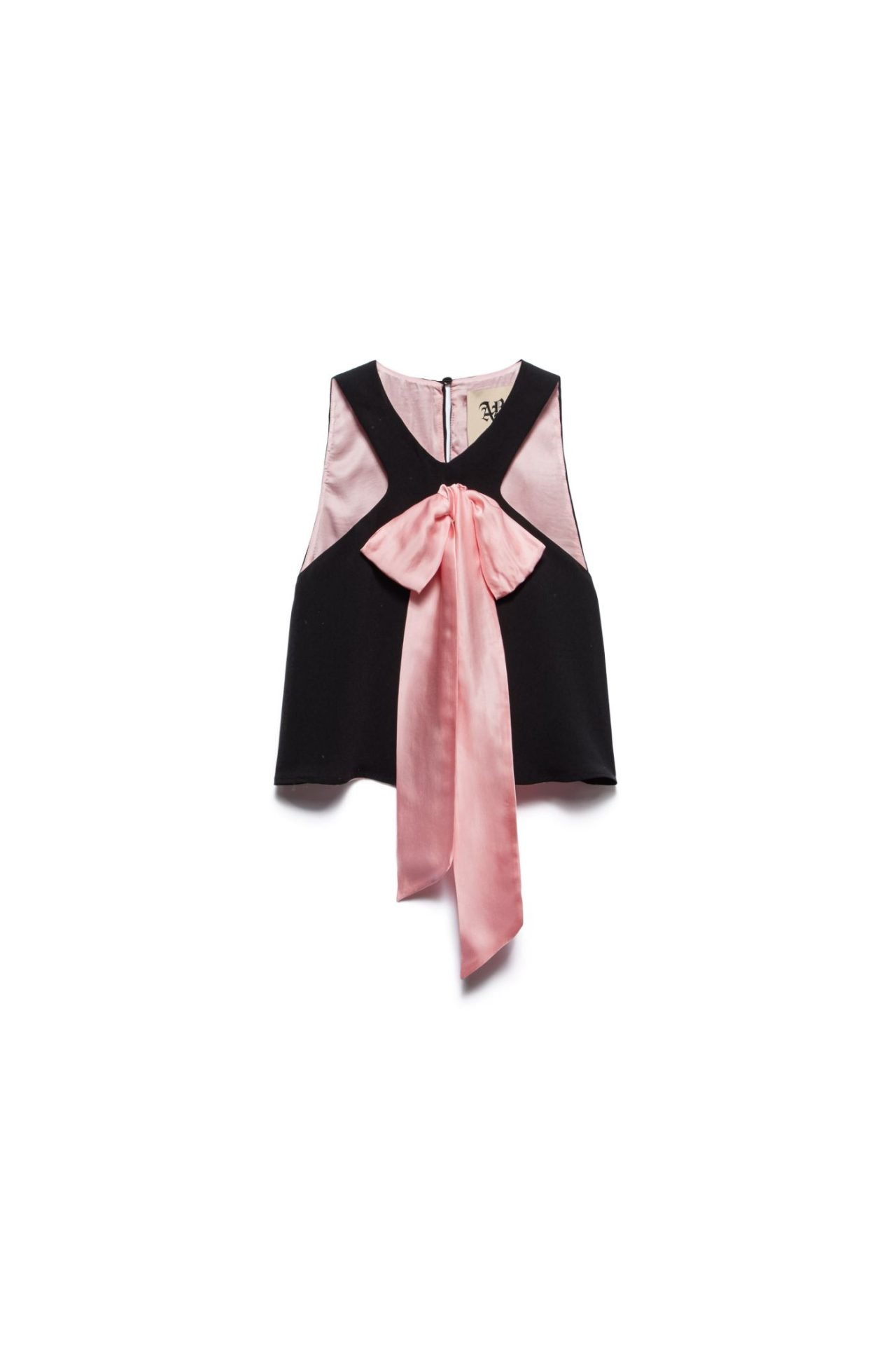 El top Betsy es romántico y audaz a partes iguales. Su escote inusual muestra los hombros, coronado con un lazo exagerado en contraste. Diseñado con una silueta relajada y corta con una elegante abertura en forma de lágrima en la espalda.