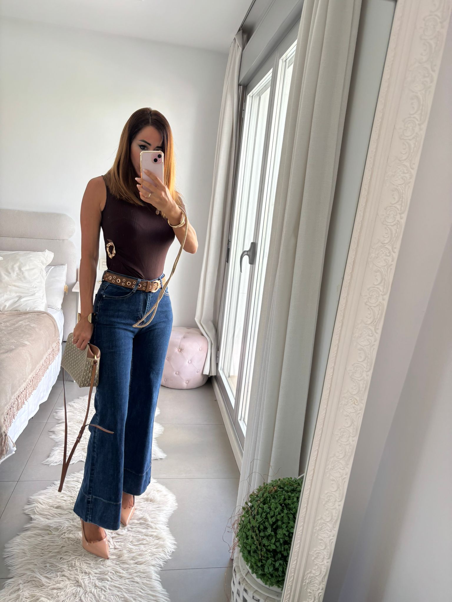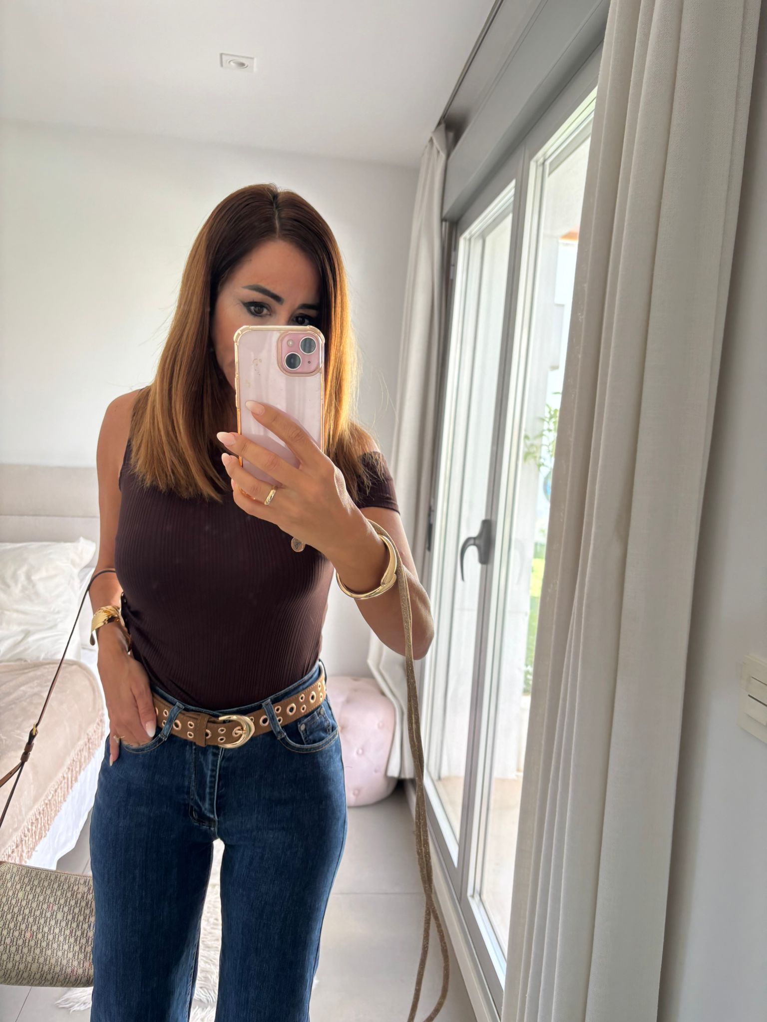Top ajustado de un solo hombro con tejido elástico y suave.