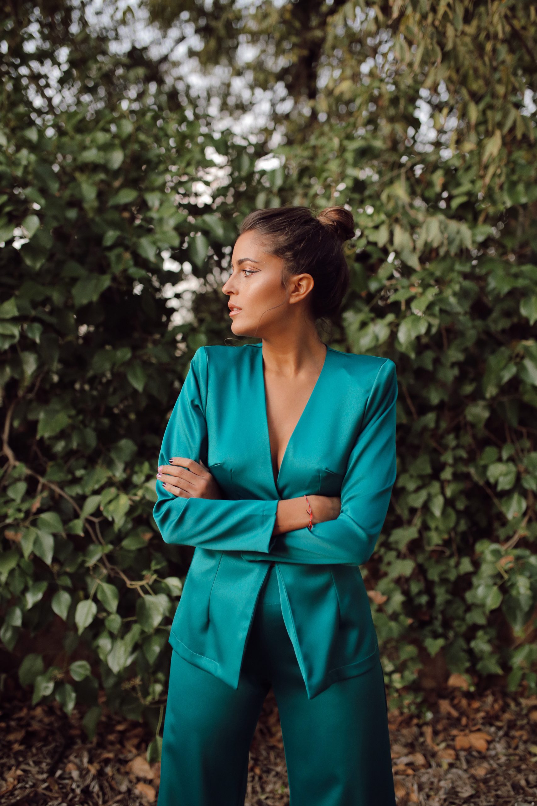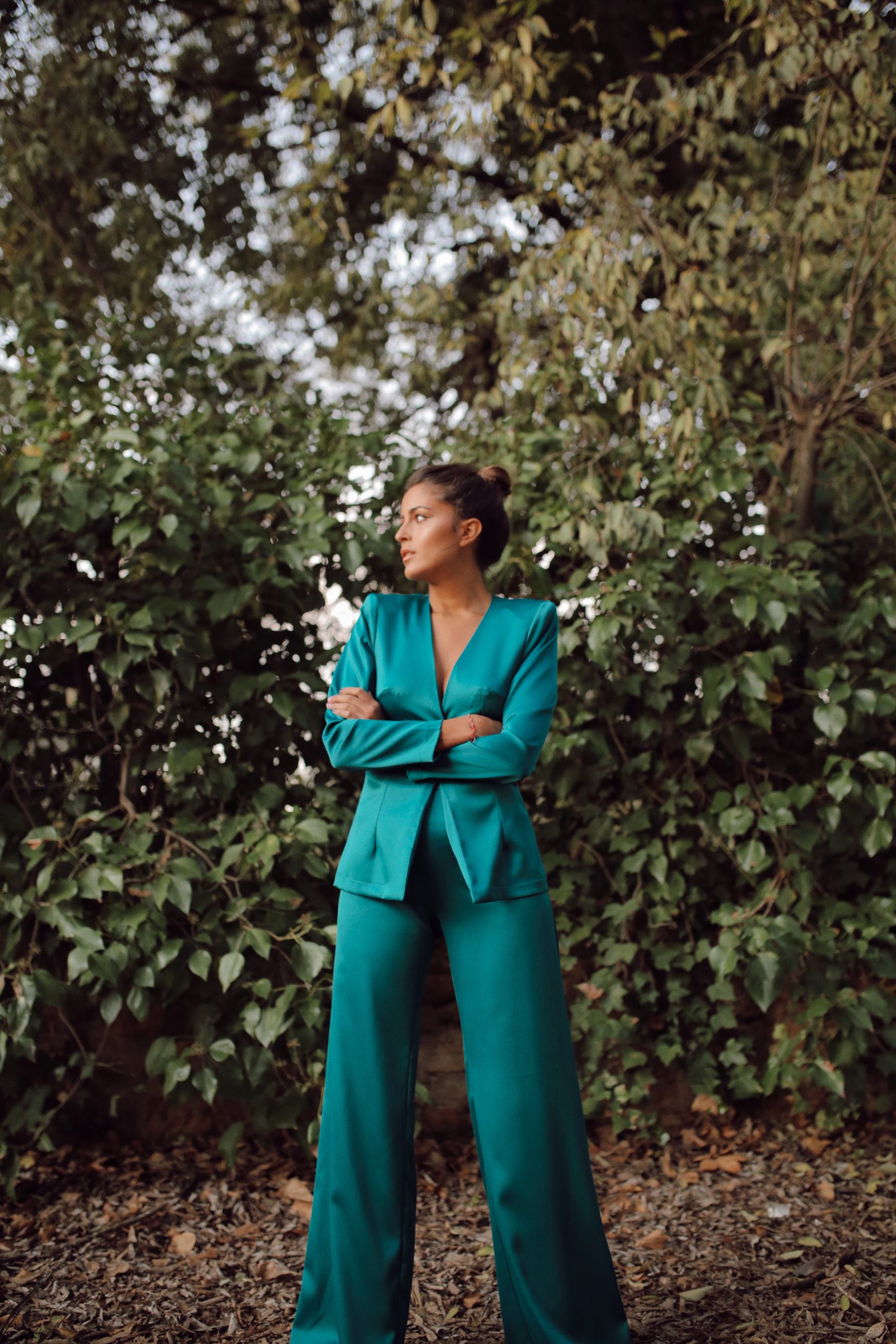 ¿Que os parece este total look? Un traje de lo más ideal, ¡Porque nosotras llevamos los pantalones! Es un look muy top, a nosotras nos encanta. Inspirado su diseño en Coco Chanel, hemos trasladado el avance del traje de chaqueta, muy ajustado en la cintura, con hombreras sobresalientes, digamos de otra época. Es un diseño muy top, ideal para comisiones, bautizos, o para salir a tomar algo. Porque te gusta sentirte más guapa que nunca y punto.