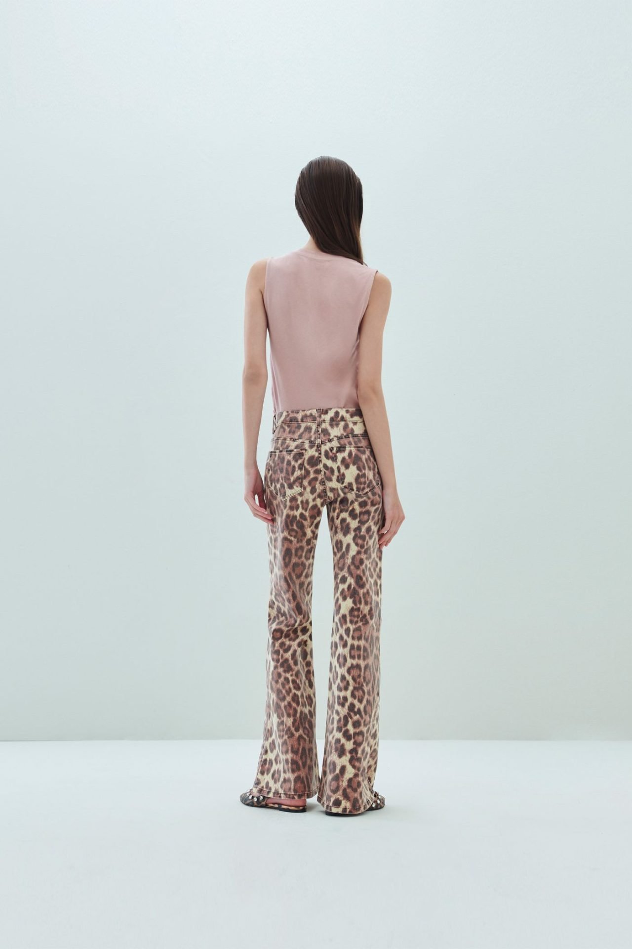 • Vaqueros acampanados de mezclilla de algodón elástico con estampado de leopardo