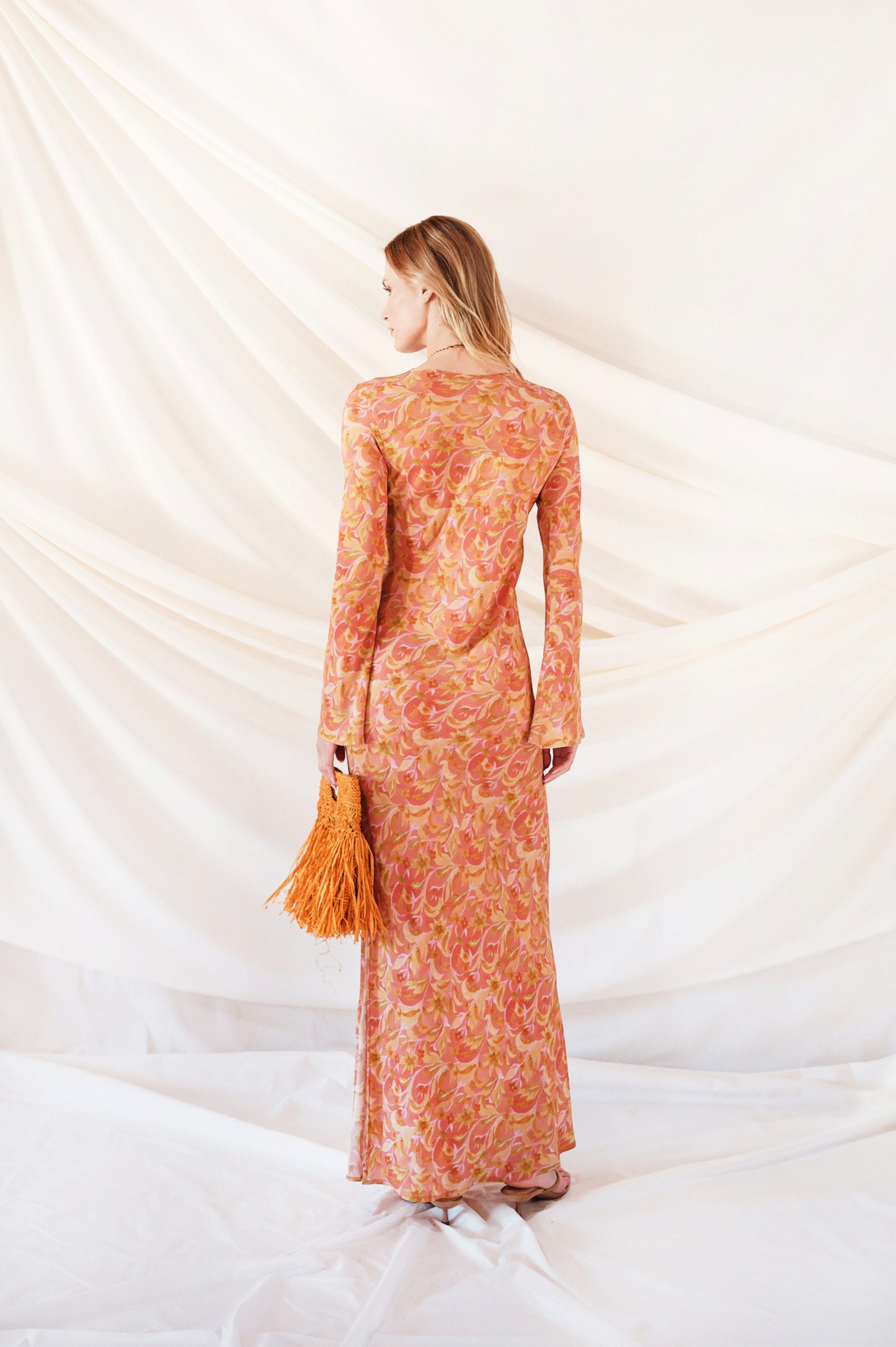 Vestido exclusivo de la colección By Biombo con estampado propio. Tejido crepe viscosa. Manga larga acampanada y escote en lágrima. Apertura en el lateral. Talla ajustado por lo que si dudas de talla, escoger una talla más grande.