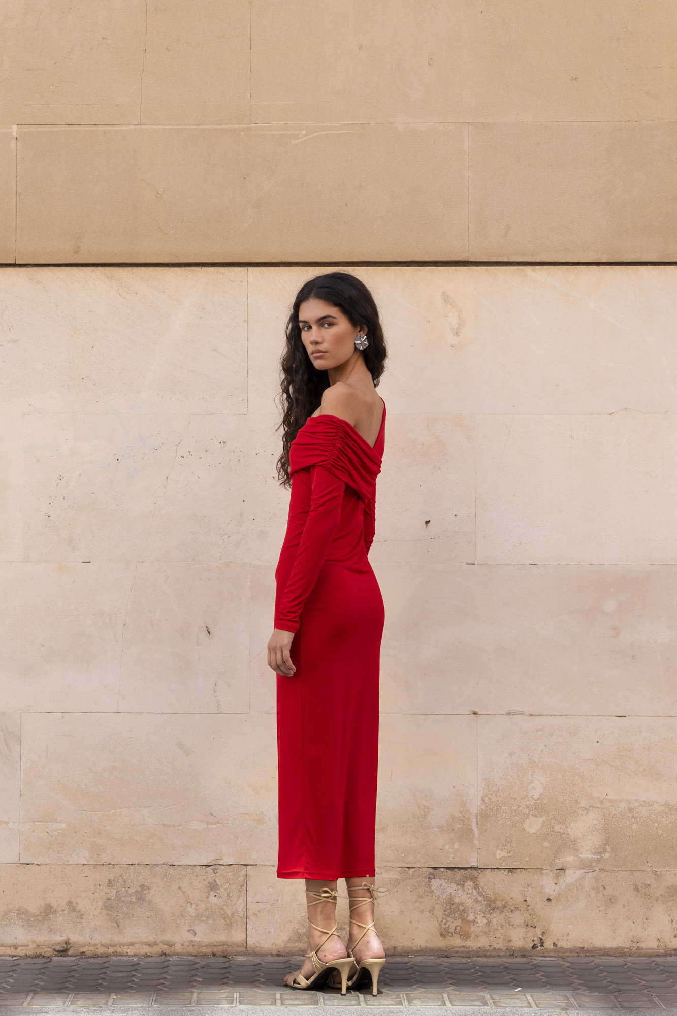 VESTIDO MIDI ASIMETRICO ROJO