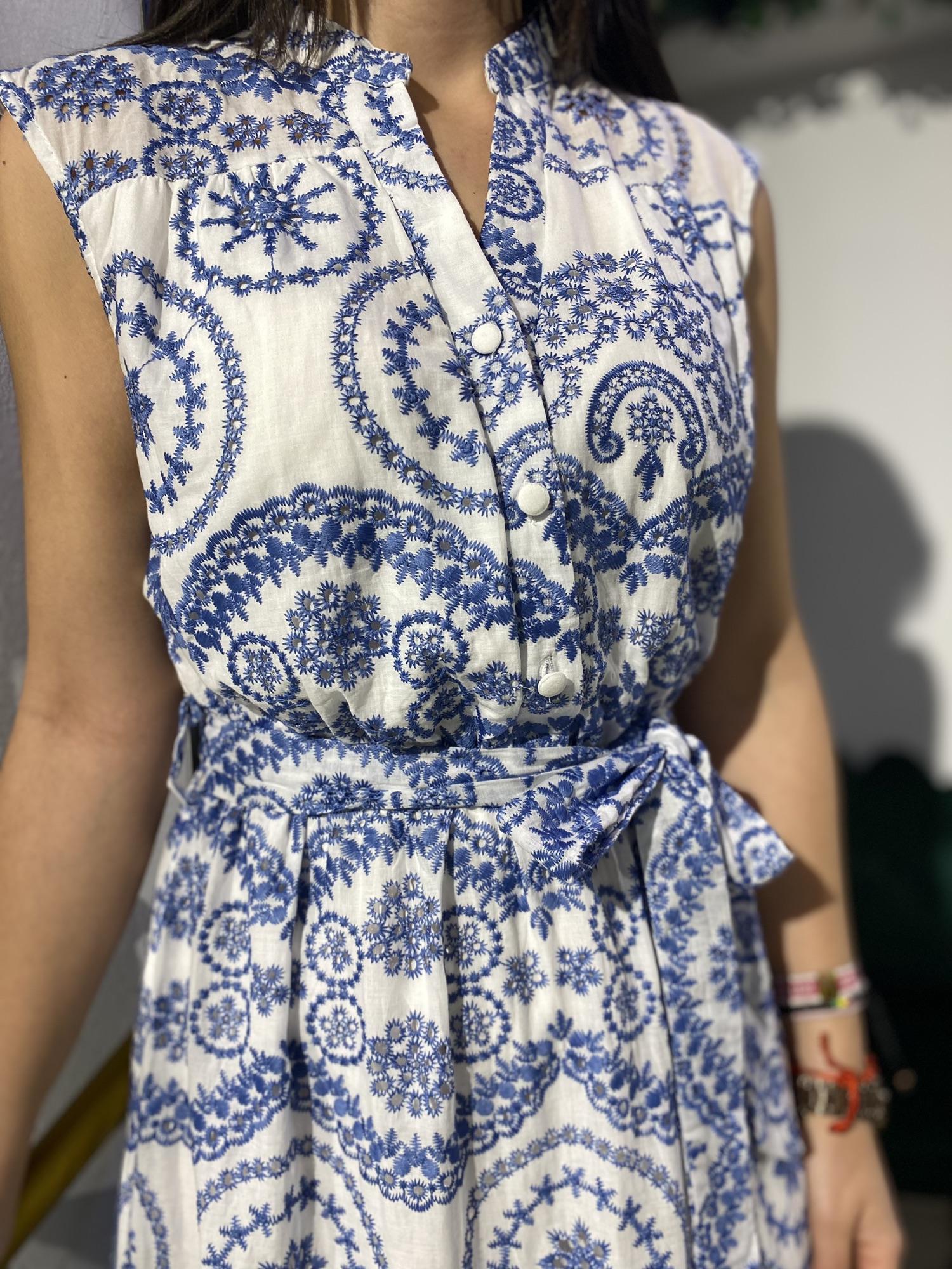 Este vestido boho bordado azul desmangado es una prenda versátil que podrás adaptar a diferentes estilos. Llévalo como vestido de playa sobre tu traje de baño, o combínalo con sandalias y accesorios para un look de tarde bohemio y elegante. ¡Las posibilidades son infinitas!