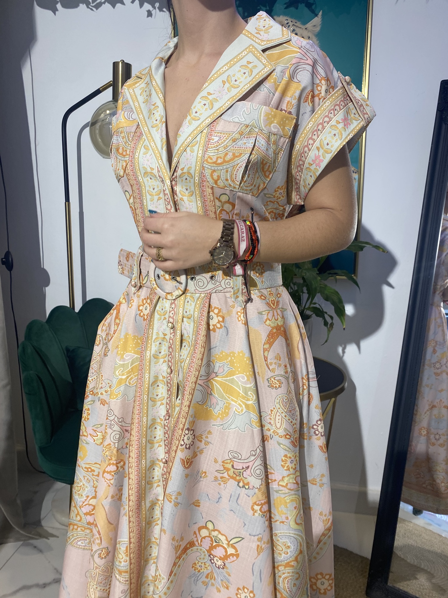 Vestido camisero rosa estampado cinturón