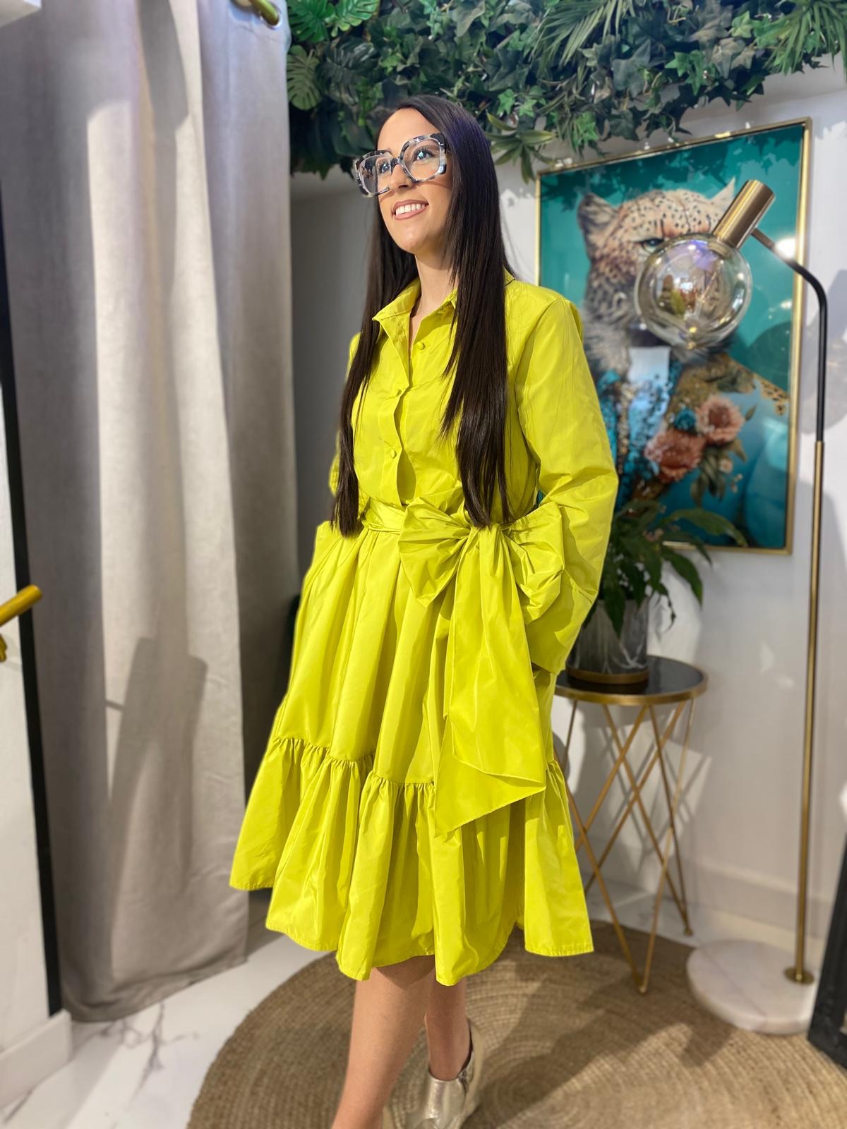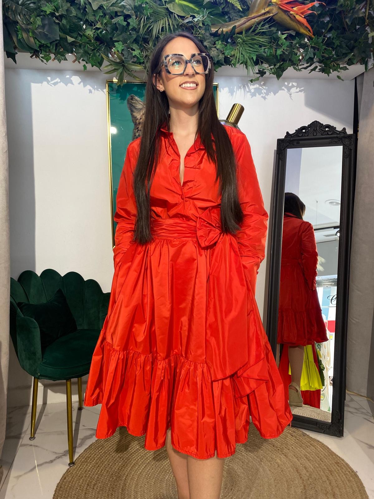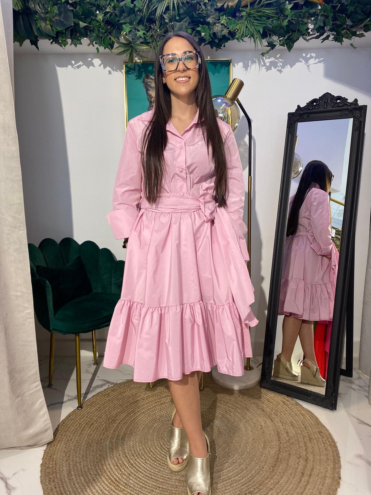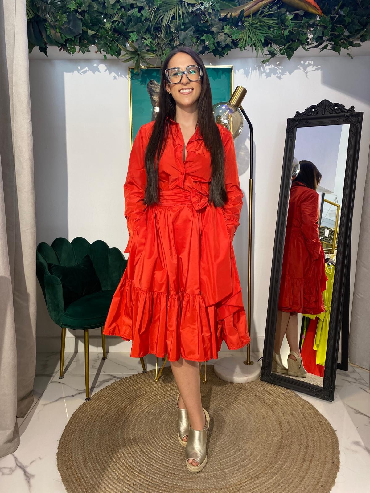 Irradia glamour con este vestido camisero de tafetán, donde la elegancia del tejido se realza con un favorecedor bajo volante largo. El sutil brillo del tafetán añade un toque especial, mientras que el volante aporta feminidad y fluidez a cada paso. Perfecto para eventos donde quieras destacar con un estilo único y refinado.