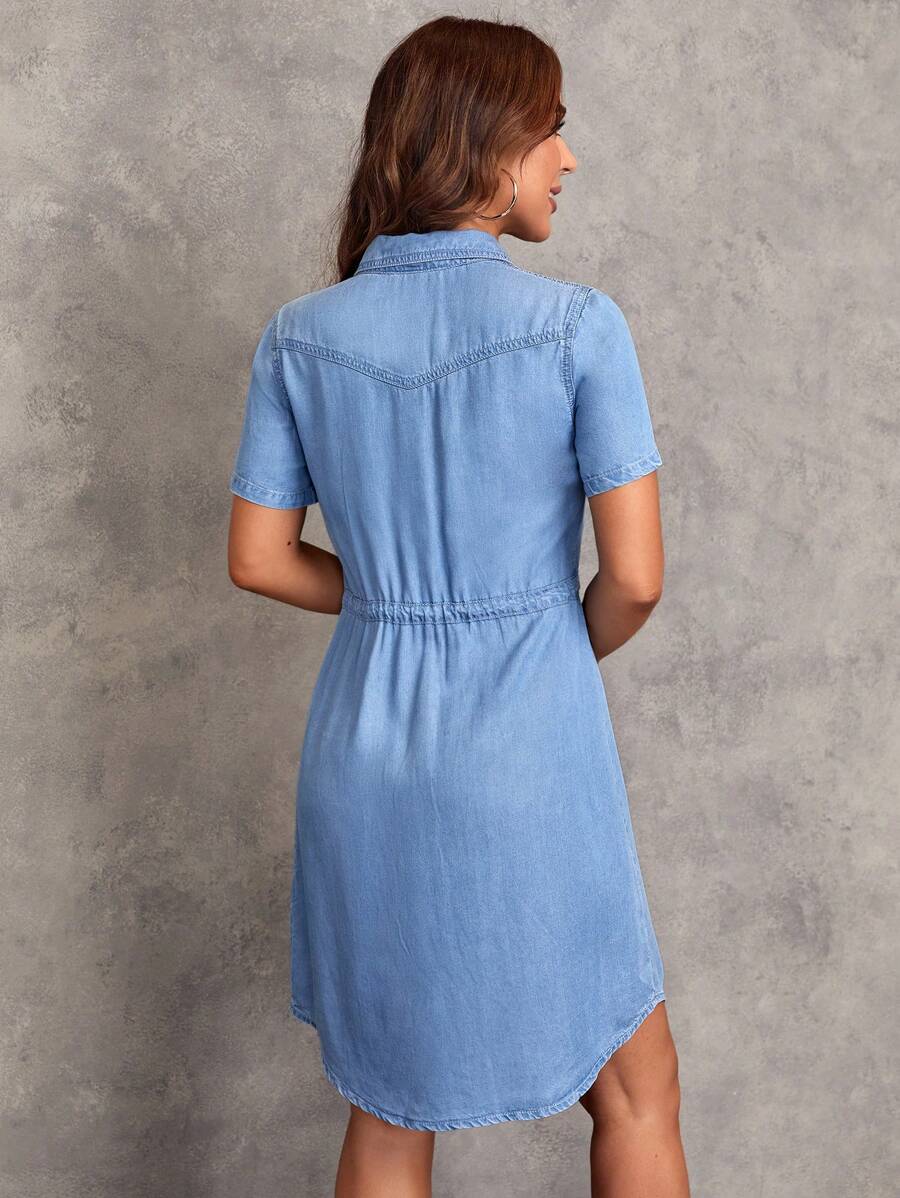 Composición: 100% Lyocell. Esta camisa corta de mezclilla presenta un estilo casual y fresco, ideal para un look relajado con un toque moderno. Confeccionada en tela no elástica y de lavado ligero, ofrece una textura suave y natural. Su diseño incluye cuello de camisa, manga corta y corte recto con talle alto, brindando comodidad y movimiento. Los detalles de botones, cordón y bolsillos aportan funcionalidad y un aire desenfadado. Perfecta para combinar con prendas básicas o accesorios de estilo urbano. Se puede lavar a máquina, evitando la limpieza en seco.