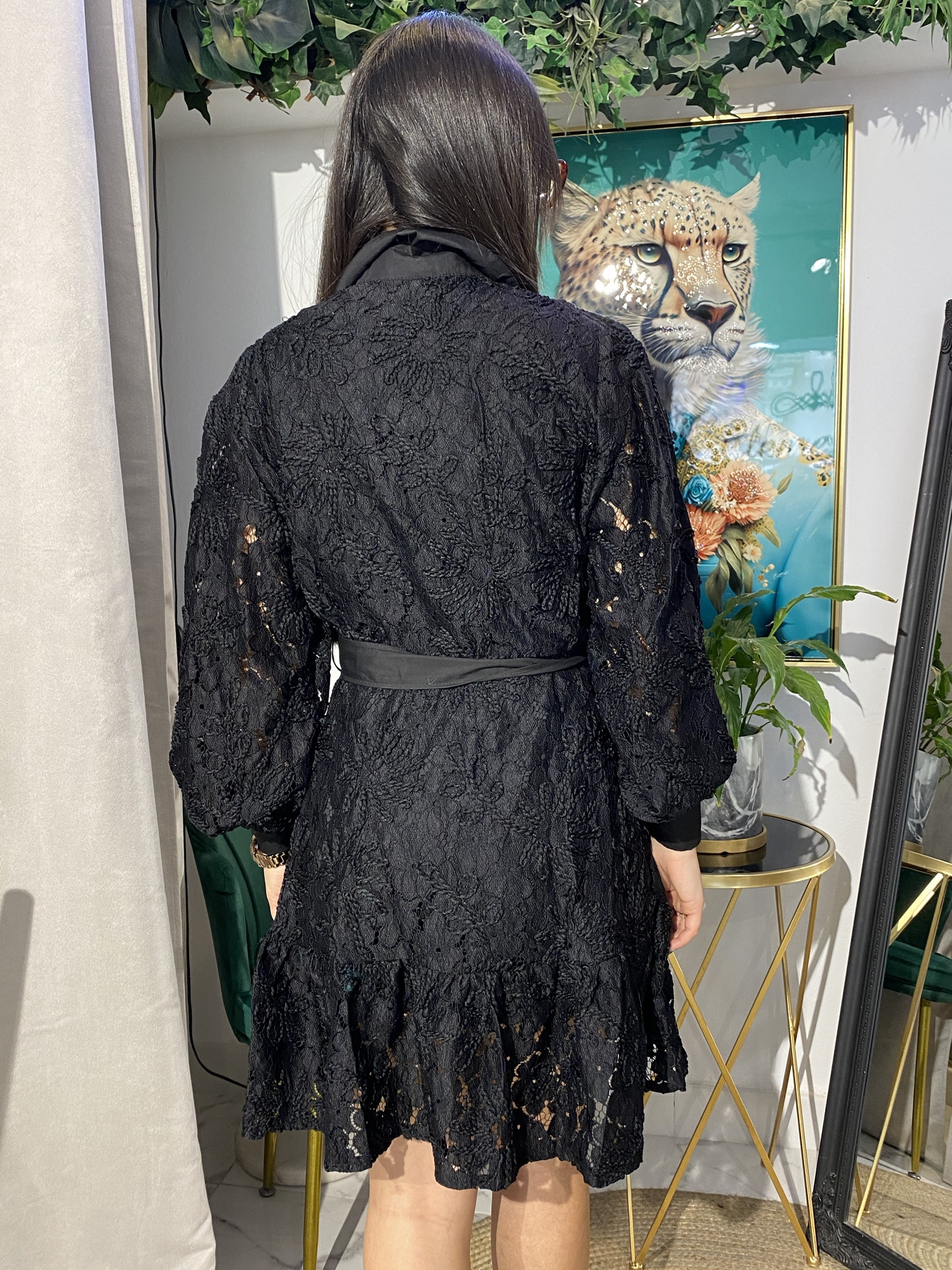 Este vestido corto camisero calado con cinturón es la prenda perfecta para un look femenino y fresco. Su diseño único y los detalles calados lo hacen ideal para cualquier ocasión, desde un evento casual hasta una salida con amigas.