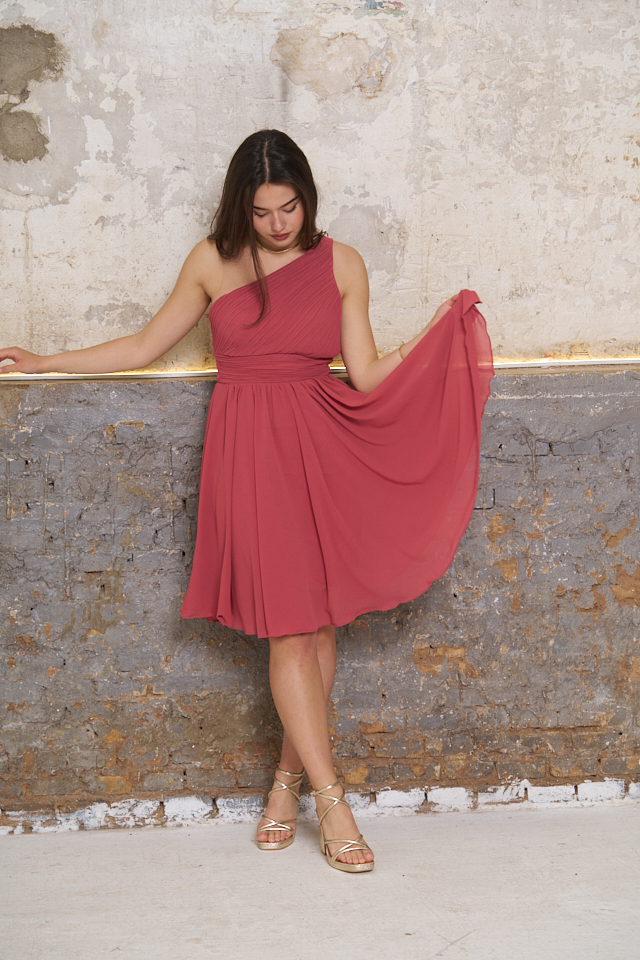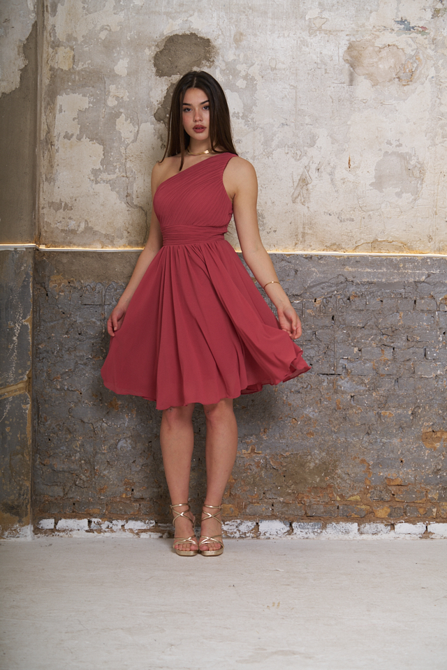 Inspirado en la majestuosidad de la antigua Grecia, este vestido asimétrico crea una sensación de fluidez a tu look. Su corte favorecedor se adapta a tu figura de manera suave, resaltando tus curvas de forma sutil y elegante.