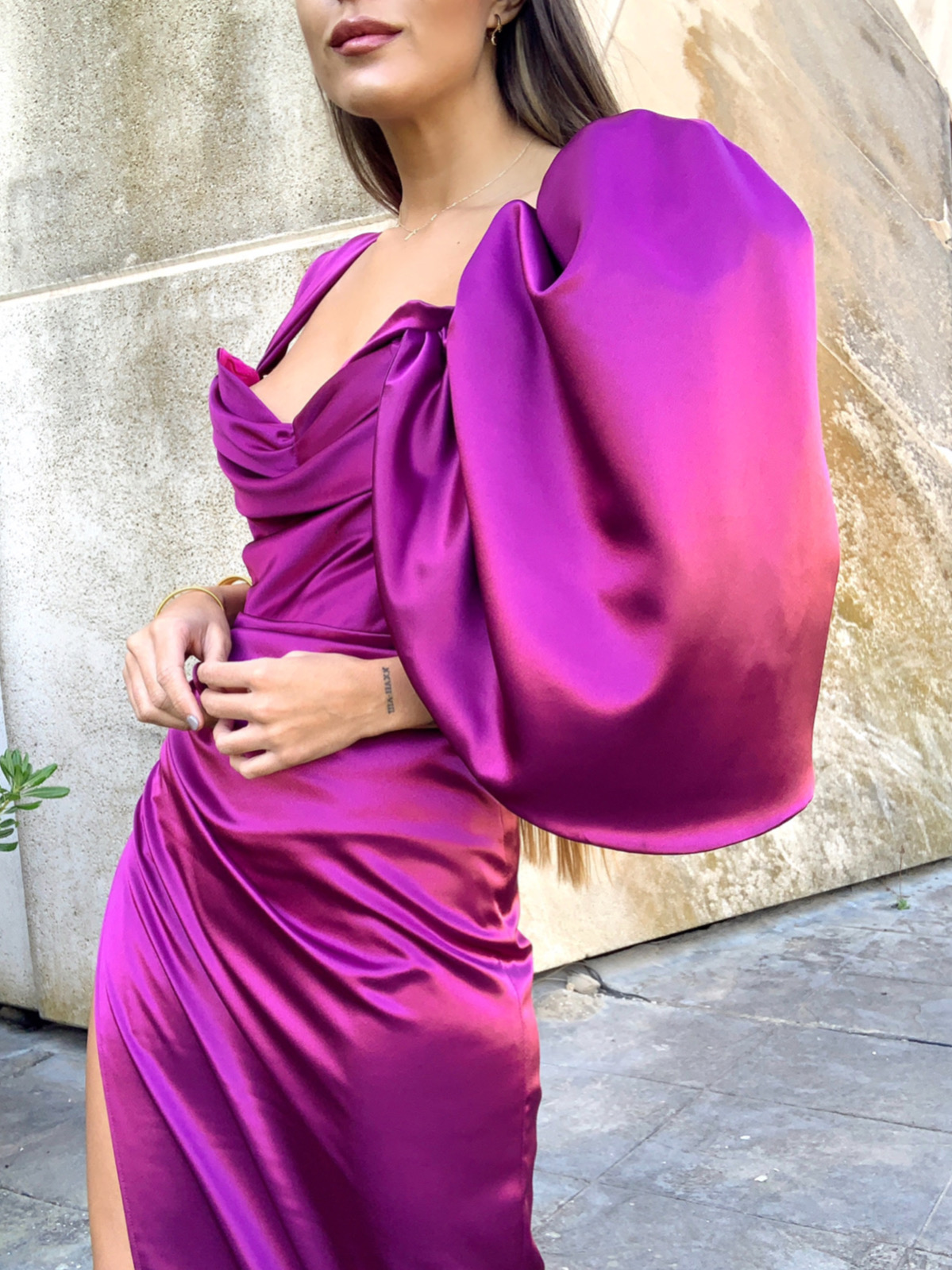 ▫️Este diseño está pensado para ti, con escote en forma de corazón y drapeado, a su vez combina mangas asimétricas, que hace de este un diseño de lo más elegante y diferente. Al final ese es el sello de nuestros diseños.